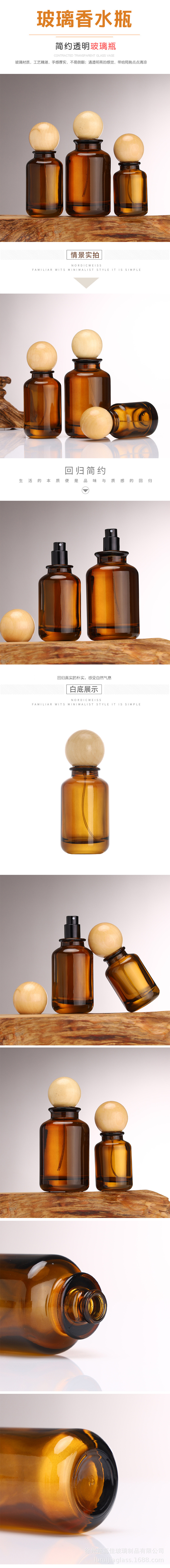 木纹球盖茶色玻璃香水瓶卡口按压式喷雾玻璃空瓶密封化妆品空瓶子