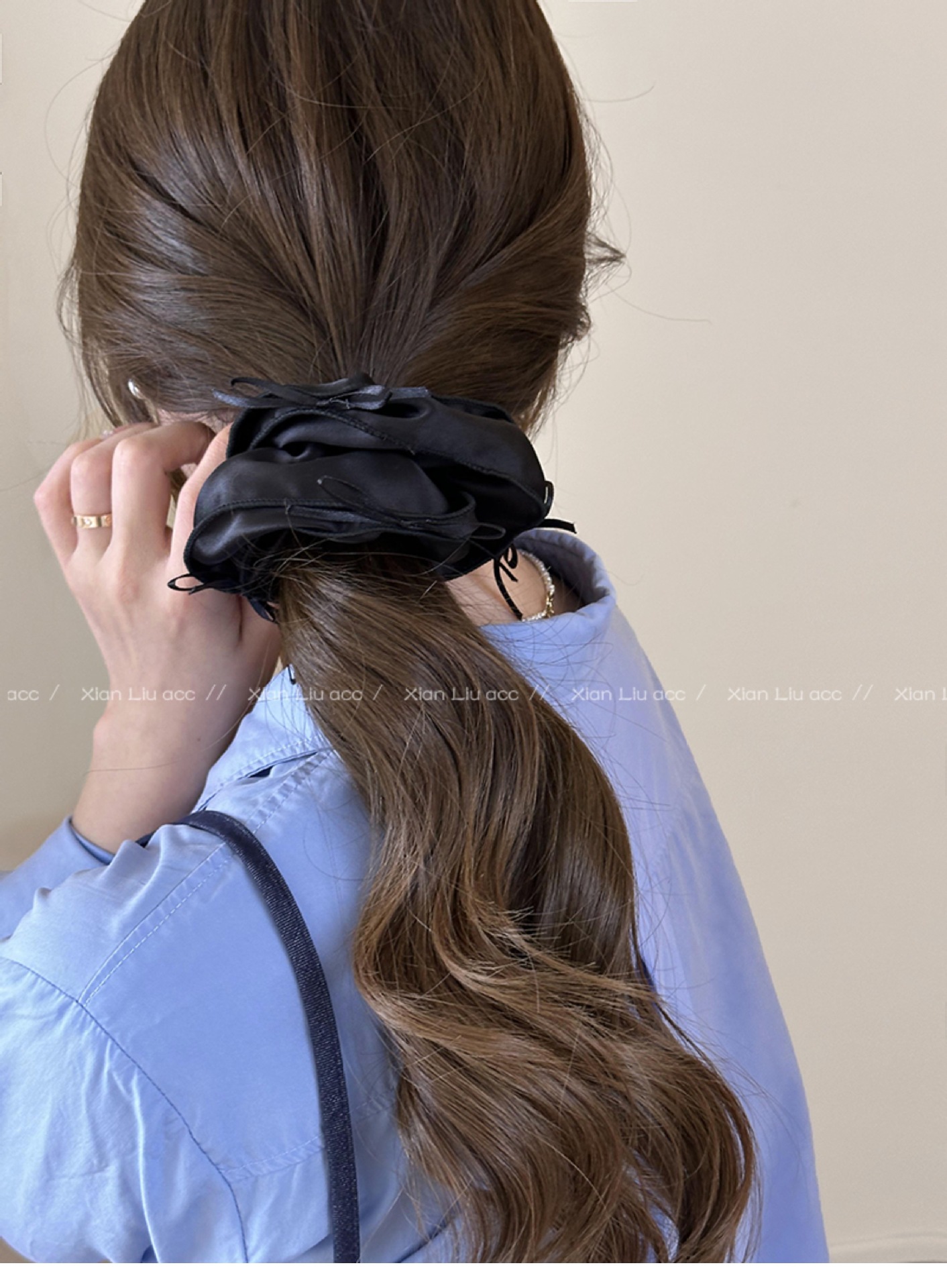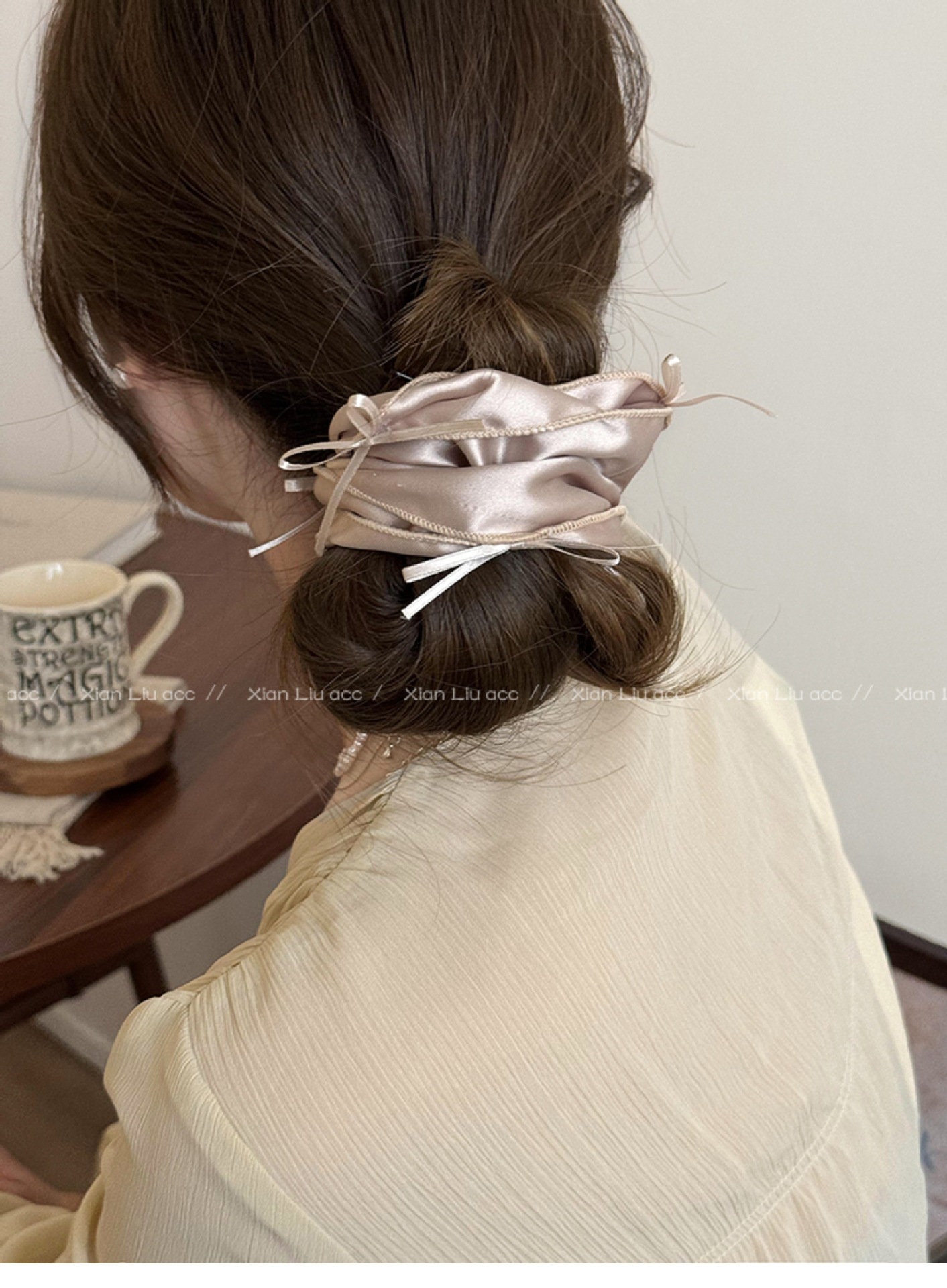 超絶甜妹蝶結びパール大腸シュシュ! 高级感韩系サテンヘッドロープ新品旅行ヘアピン