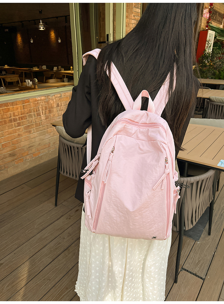 日本のカジュアルなカバンの女子大学生のシンプルな純色のリュックサックの女性の百合の軽やかな中高生のコンピュータのリュックサック