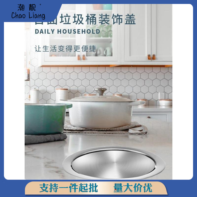 ゴミ箱蓋アクセサリーカウンタートップ装飾蓋埋め込みステンレス鋼スイングフリップ蓋家庭用キッチンバスルームラウンド