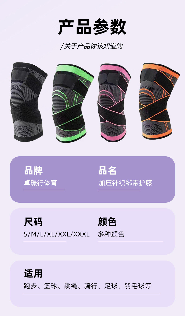 针织绑带运动护膝缠绕加压骑行篮球健身跑步登山针织护具现货防护