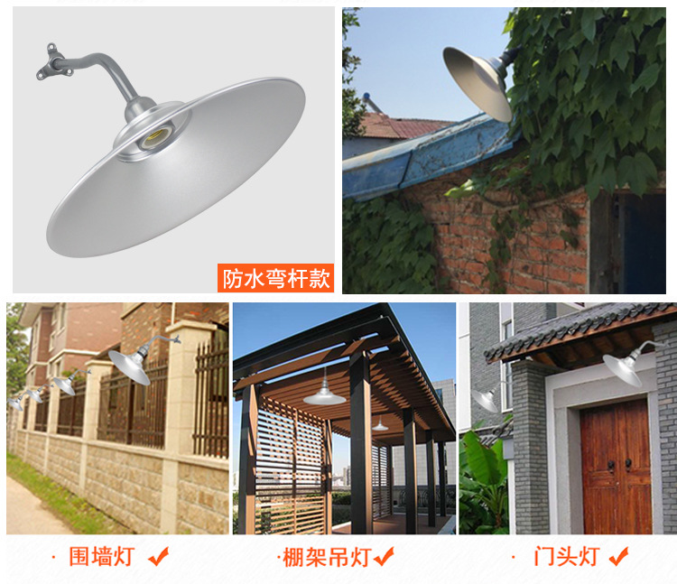 30cm (鉄) 曲がったポール + 30cm ステンレス鋼のランプシェード、30cm (鉄) 曲がったポール + 30cm 個の白い塗装ランプシェード、[30cm アルミニウムカバー + 30