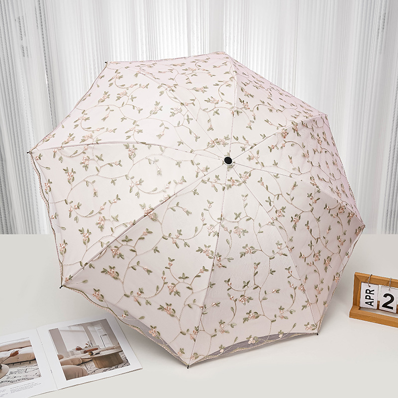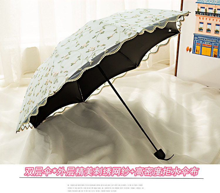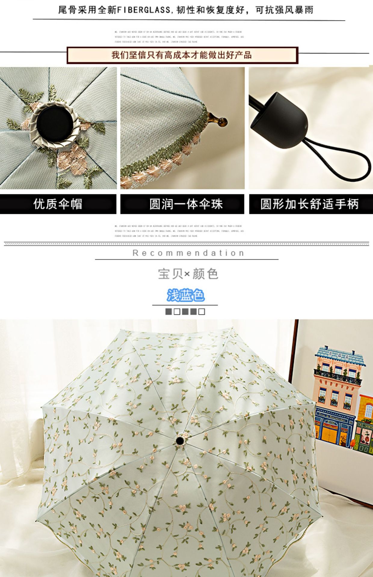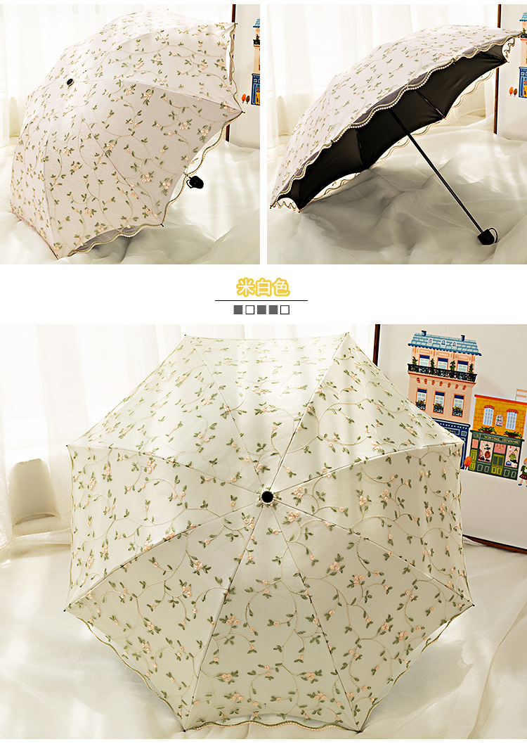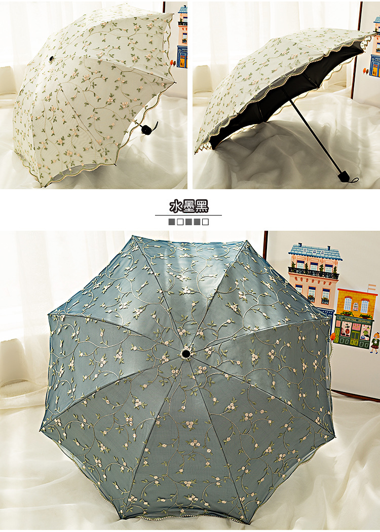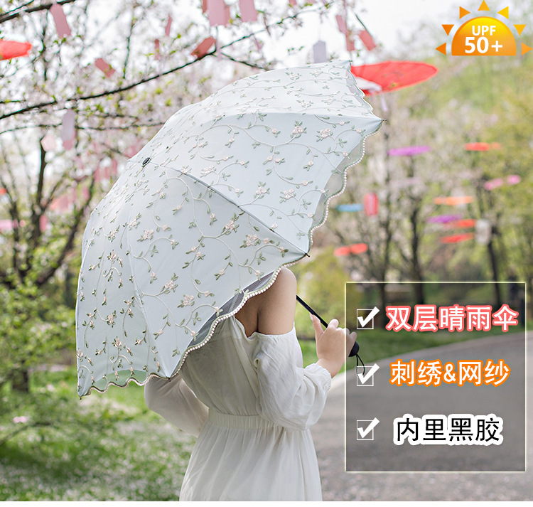 刺繍お姫様傘黒ゴム日除け傘刺繍レース日傘三折り畳み晴れ傘女日焼け止め紫外線防止