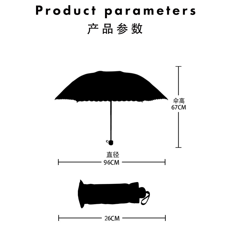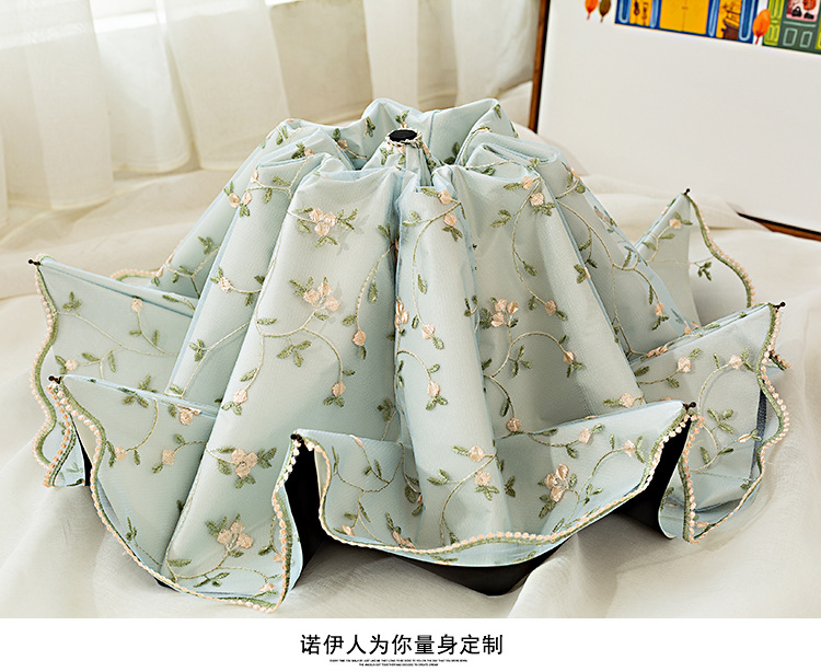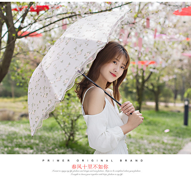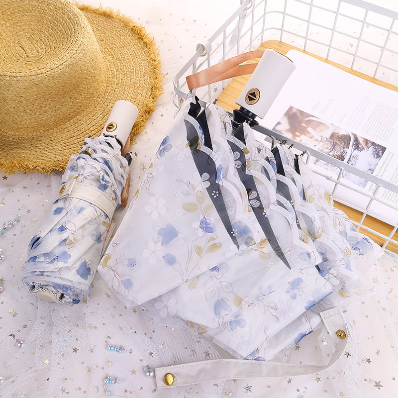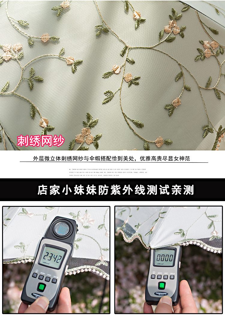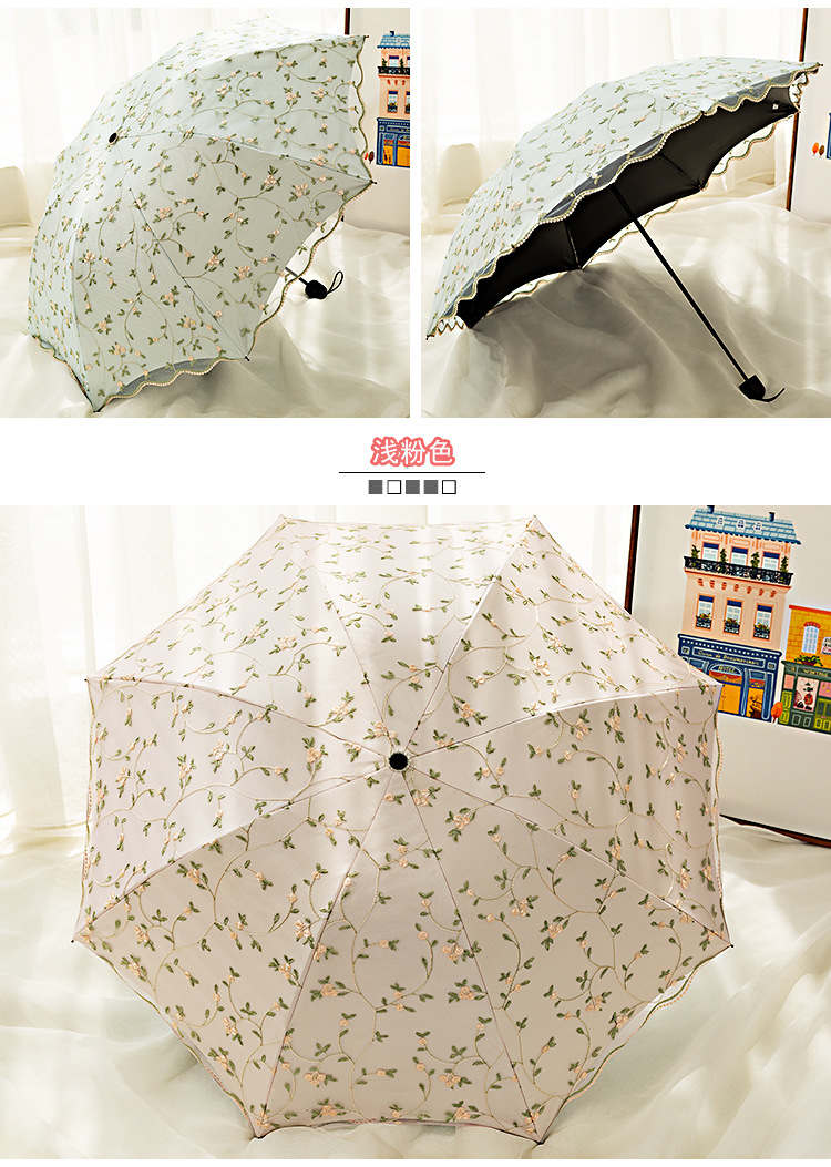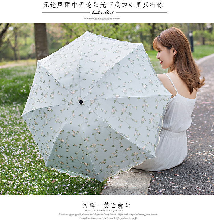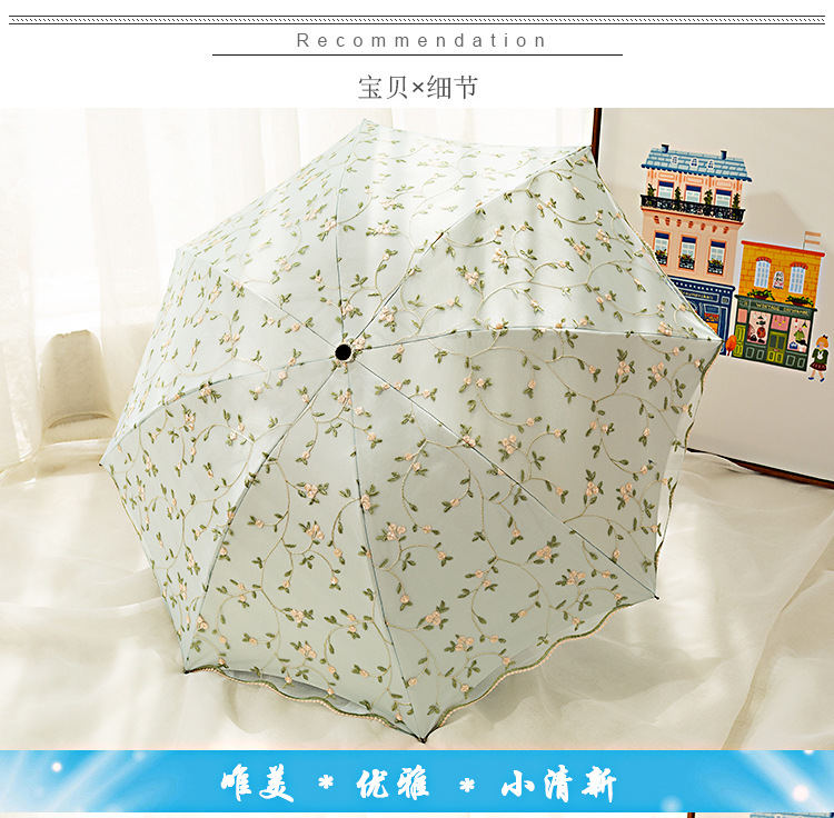 刺繍お姫様傘黒ゴム日除け傘刺繍レース日傘三折り畳み晴れ傘女日焼け止め紫外線防止