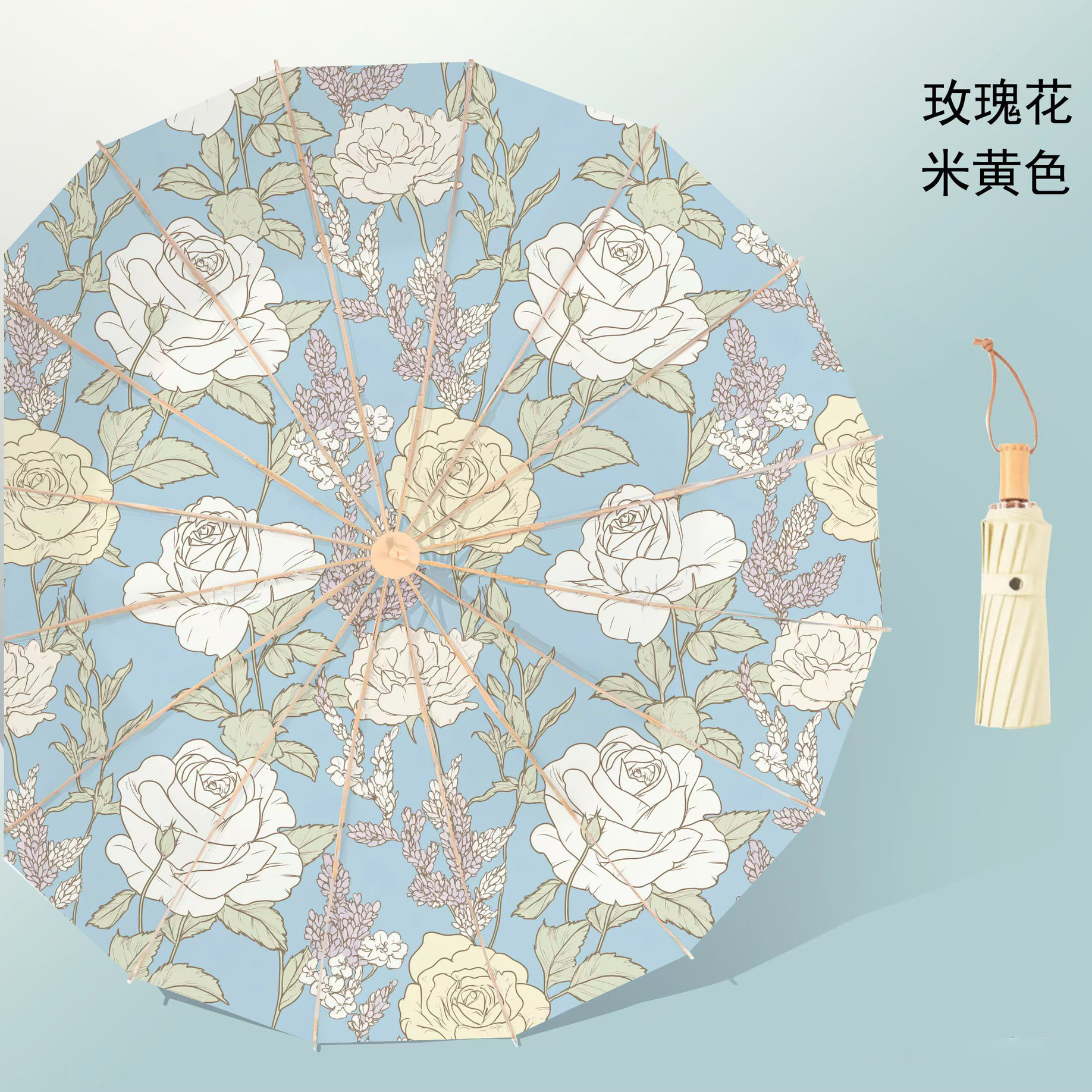 16本骨中国風高精細油絵シリーズ女性用日傘、超日焼け止め、紫外線防止、晴雨兼用折りたたみ傘