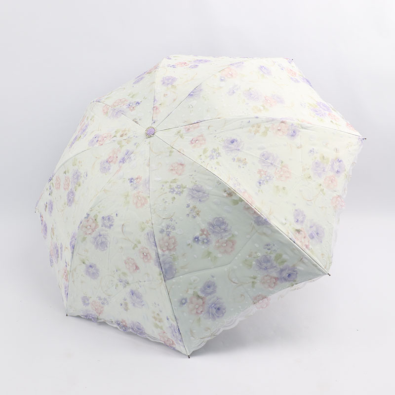 二重刺繍スパンコールレース黒ゴム太陽傘女神晴雨両用折り畳み日焼け止め紫外線防止UPF50