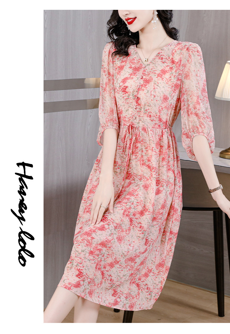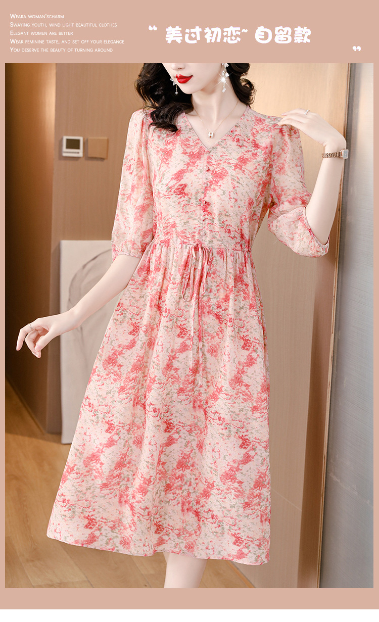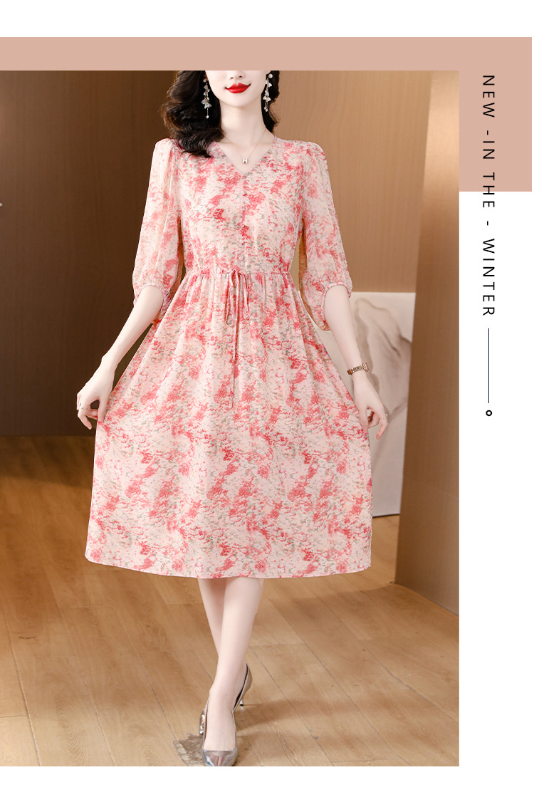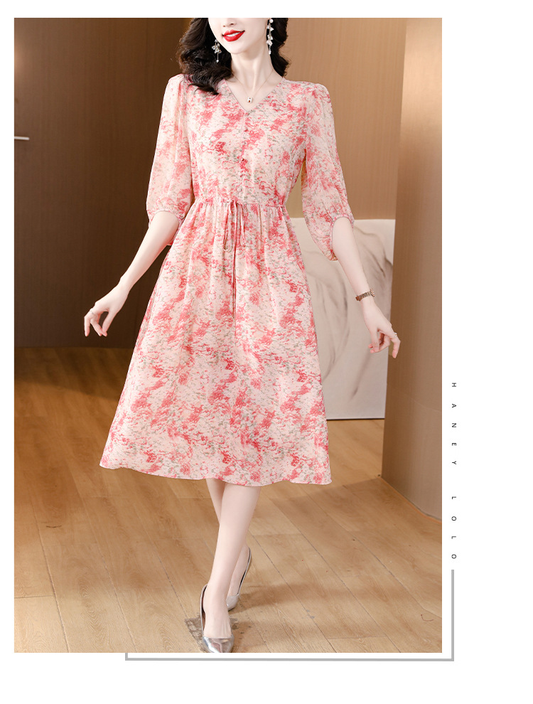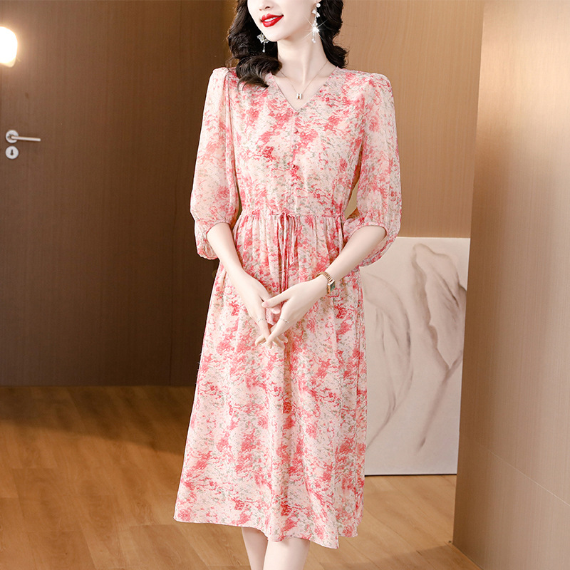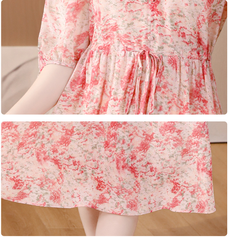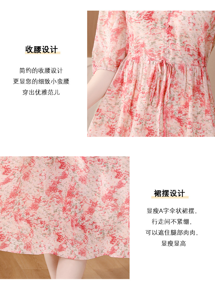 Tywf8177夏の女装ファッション若い高級感軽熟風フレンチウエストピンクの花のワンピース