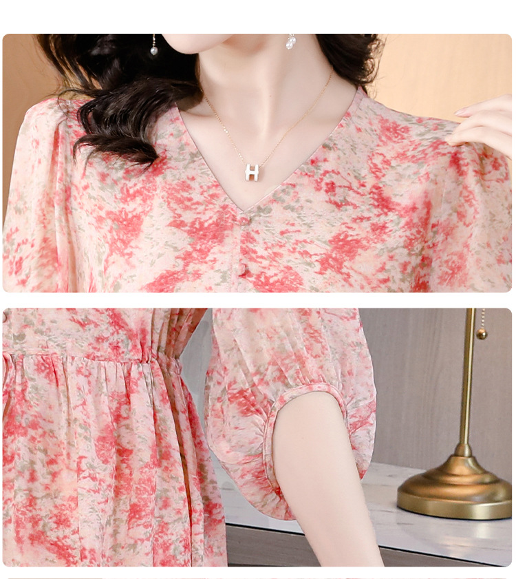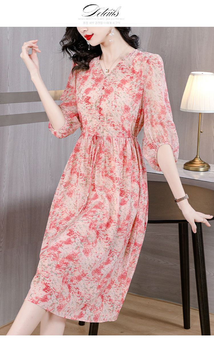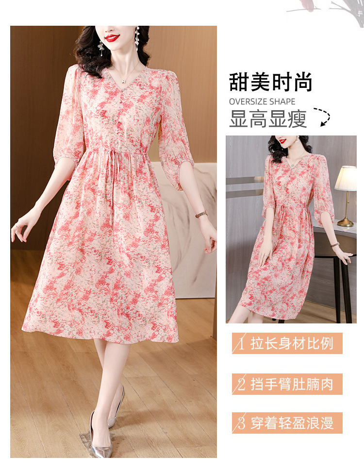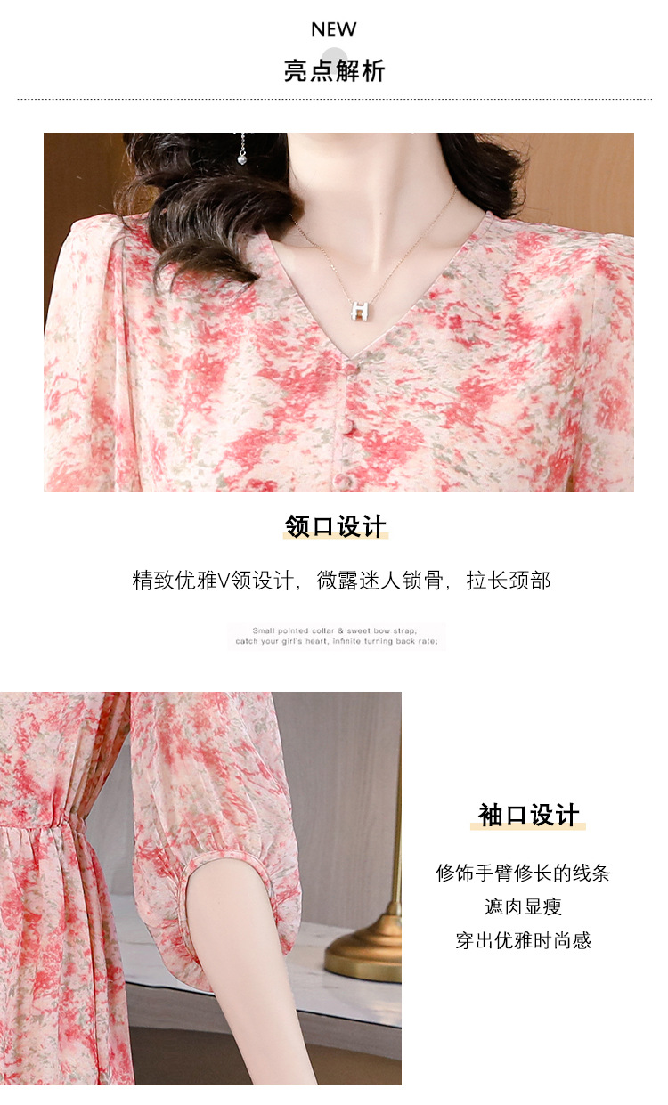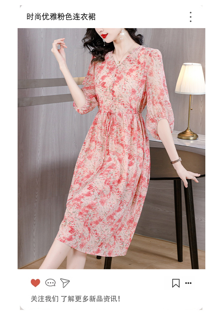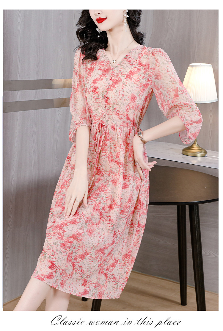 Tywf8177夏の女装ファッション若い高級感軽熟風フレンチウエストピンクの花のワンピース