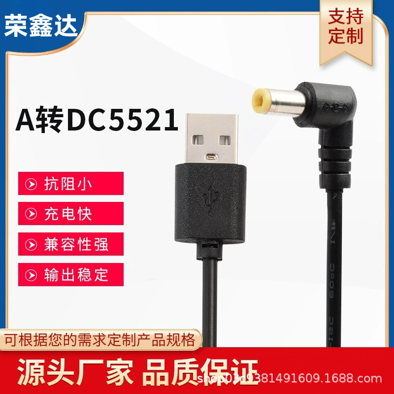 工場直売USBオス回転DC 5.5エルボDCエルボ電源線丸穴電源線5525充電線
