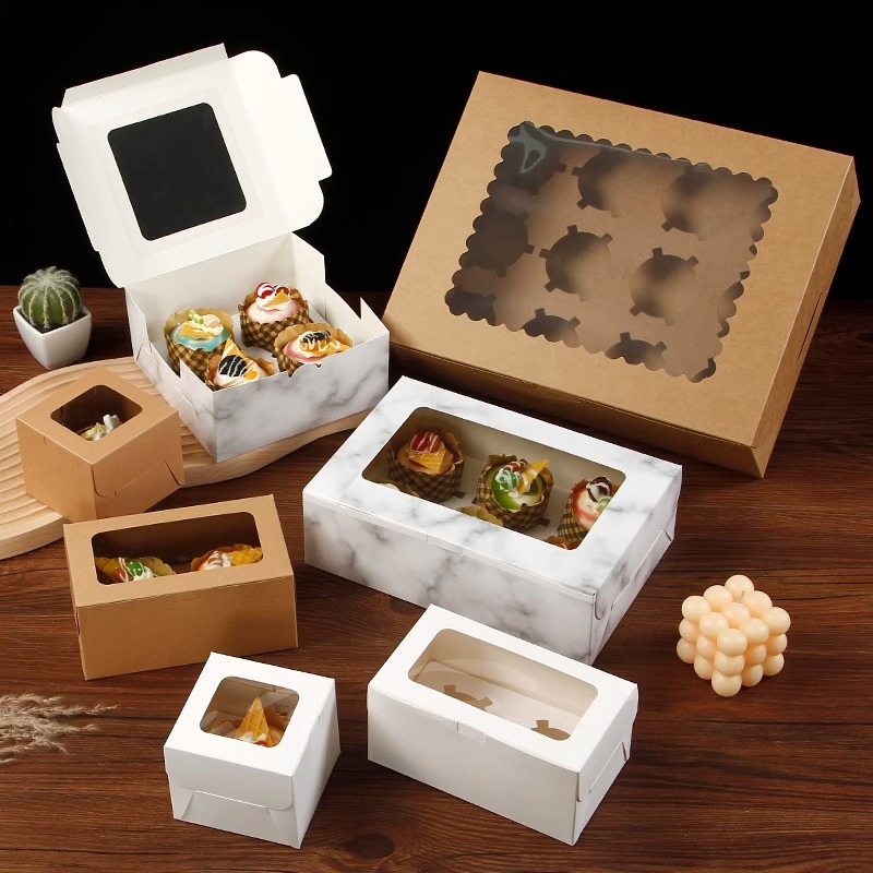 1/2/4/6/12 個白クラフト紙ウィンドウカップケーキボックスタルトプディングベーキングデザート包装箱