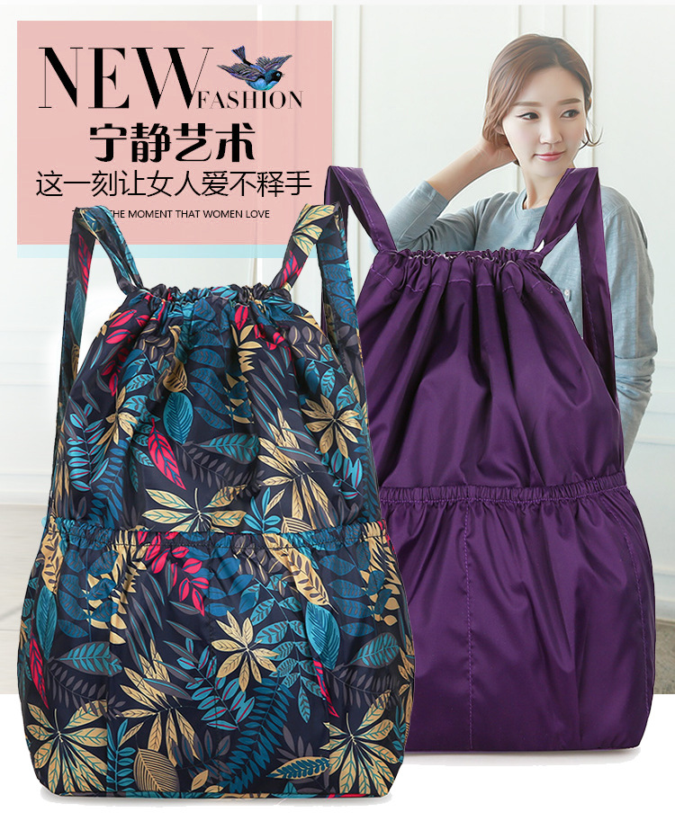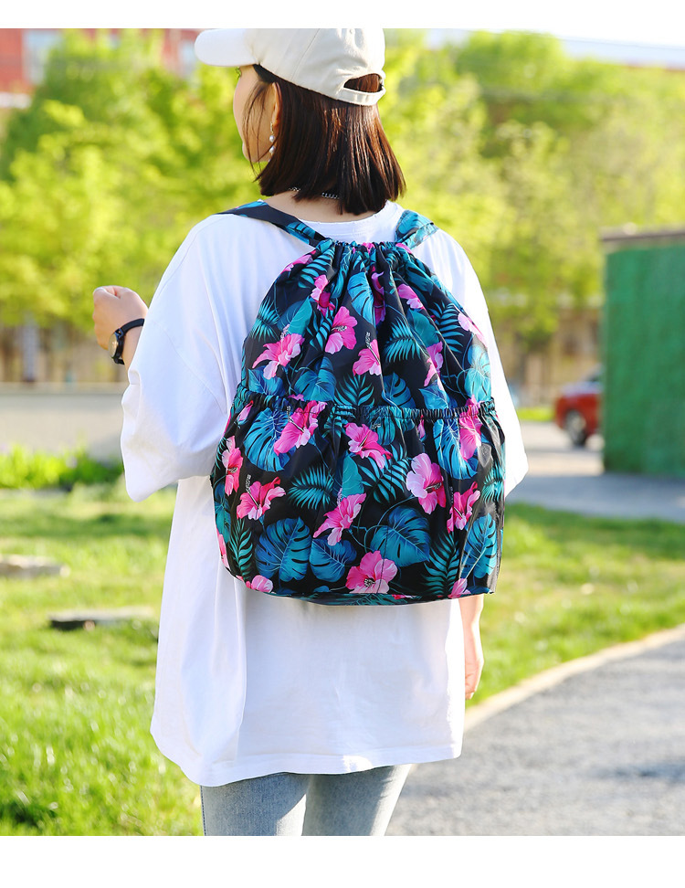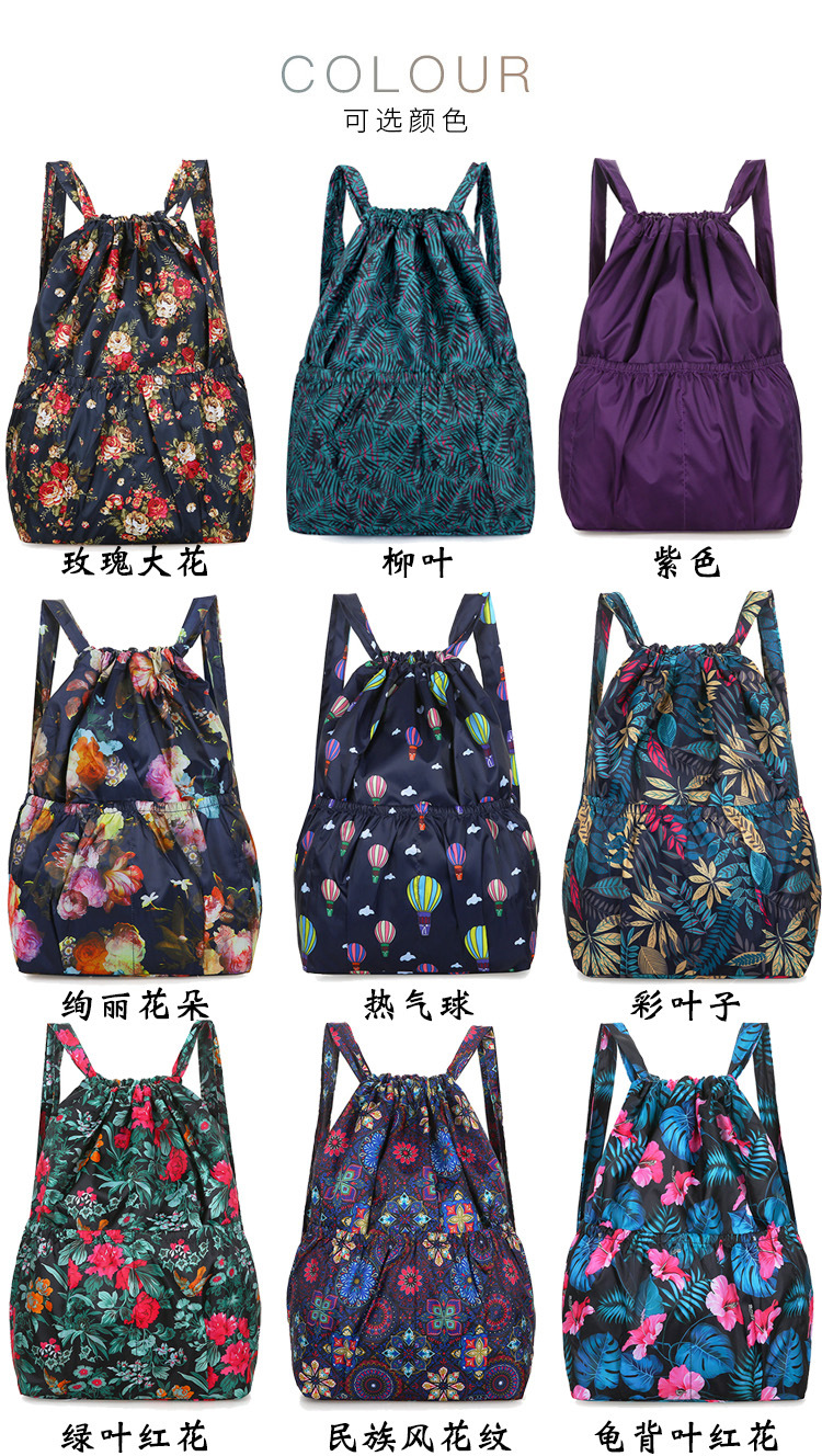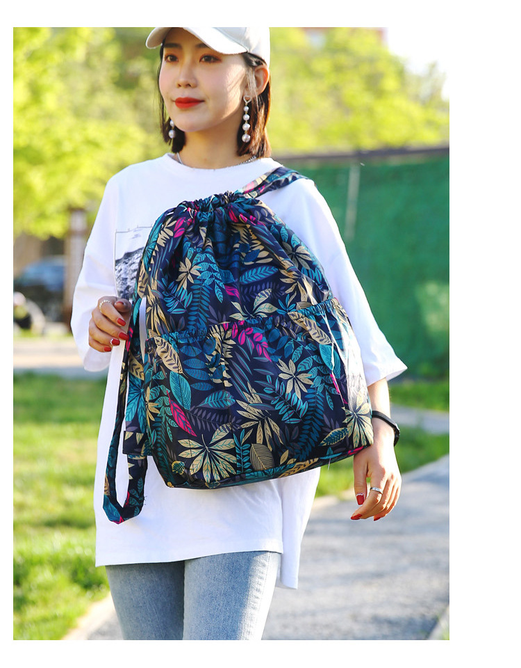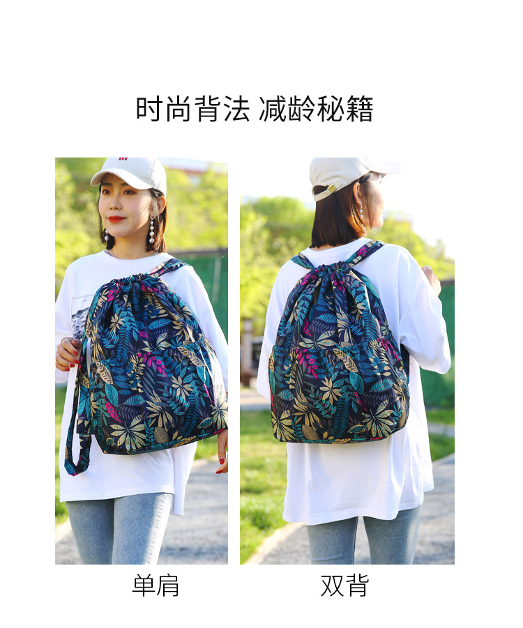 巾着リュックレディースファッション束口収納リュックサックアウトドアカジュアルファッションプリント大容量旅行リュックサック