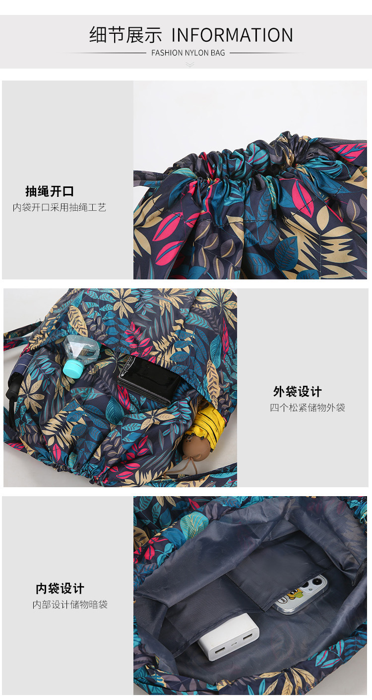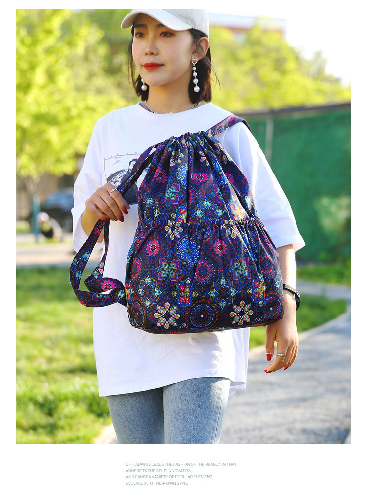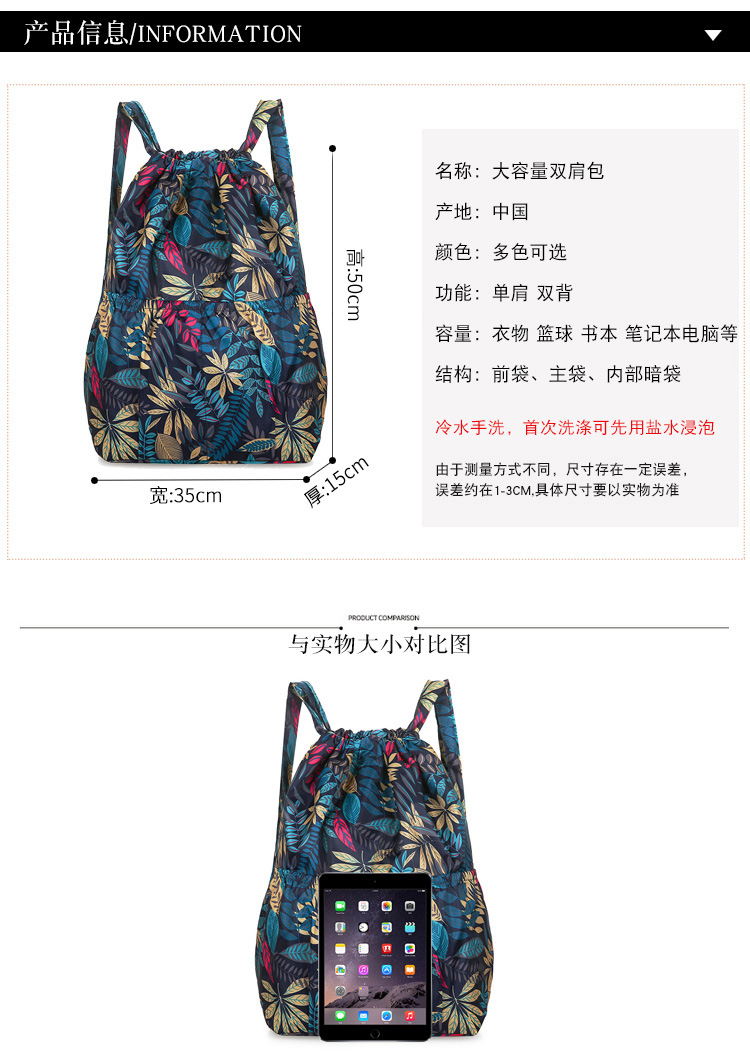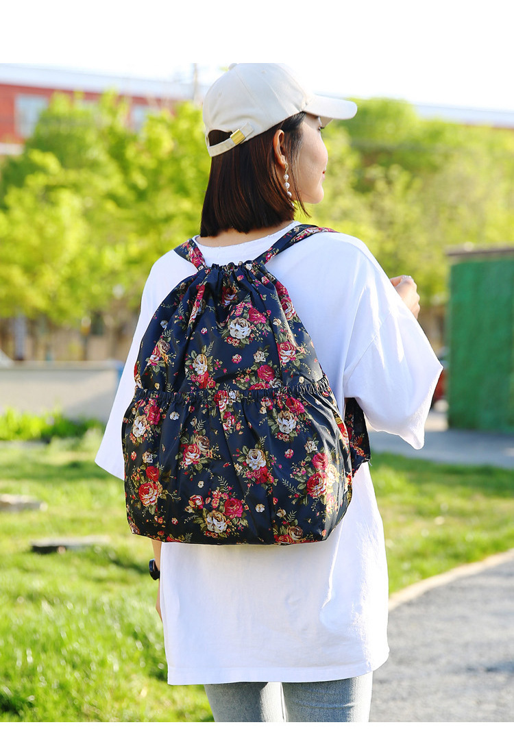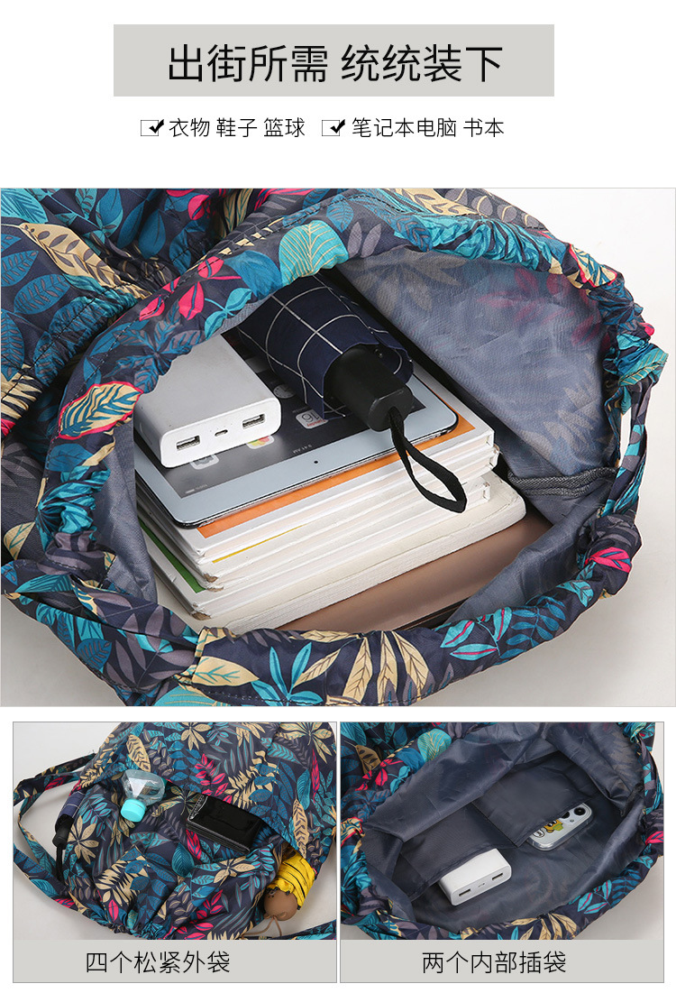 巾着リュックレディースファッション束口収納リュックサックアウトドアカジュアルファッションプリント大容量旅行リュックサック