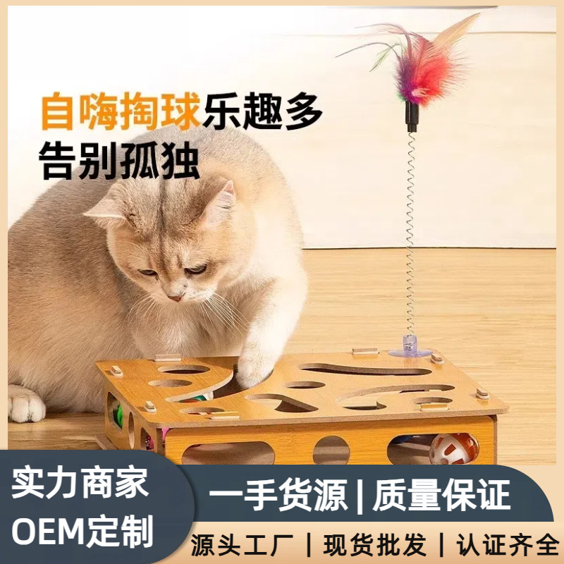 特大サイズの猫用爪とぎボードと巻き取り式猫用おもちゃ一体型、鳴るボール付き、耐摩耗性、耐噛み性、段ボール製、卸売