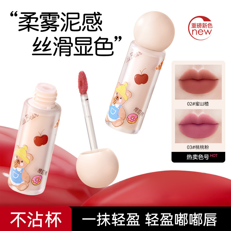 维叮熊雾感柔色唇泥丝绒雾面哑光唇彩自然显白持妆泥感不沾杯唇釉