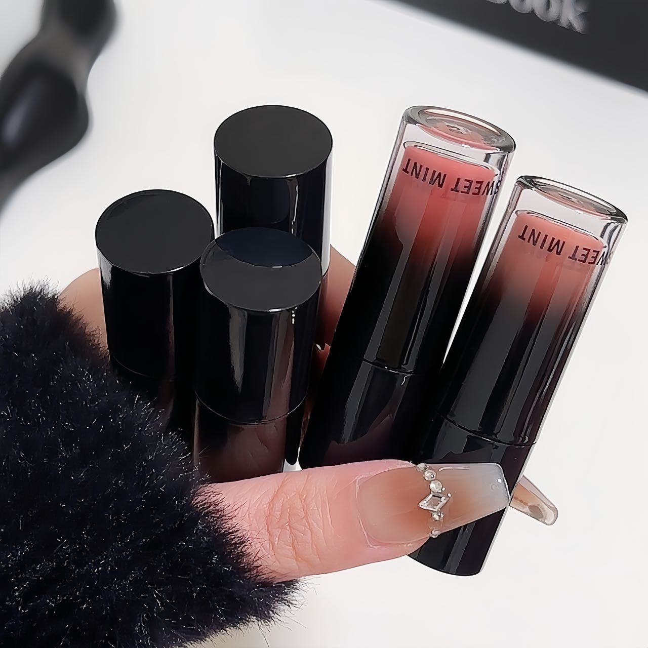 シャキーノの水の光があふれていて、鏡面の唇の釉薬が潤いを与えています。