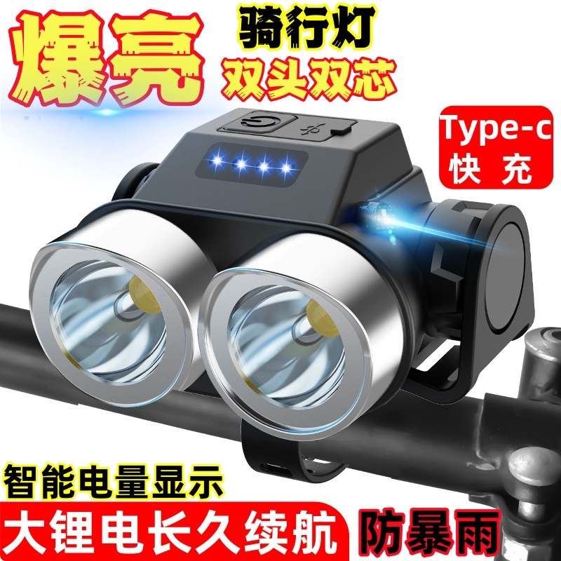 自転車ヘッドライト、夜間走行照明、強力な光懐中電灯、充電、超高輝度、屋外防雨、学生マウンテンバイクユニバーサルライディング