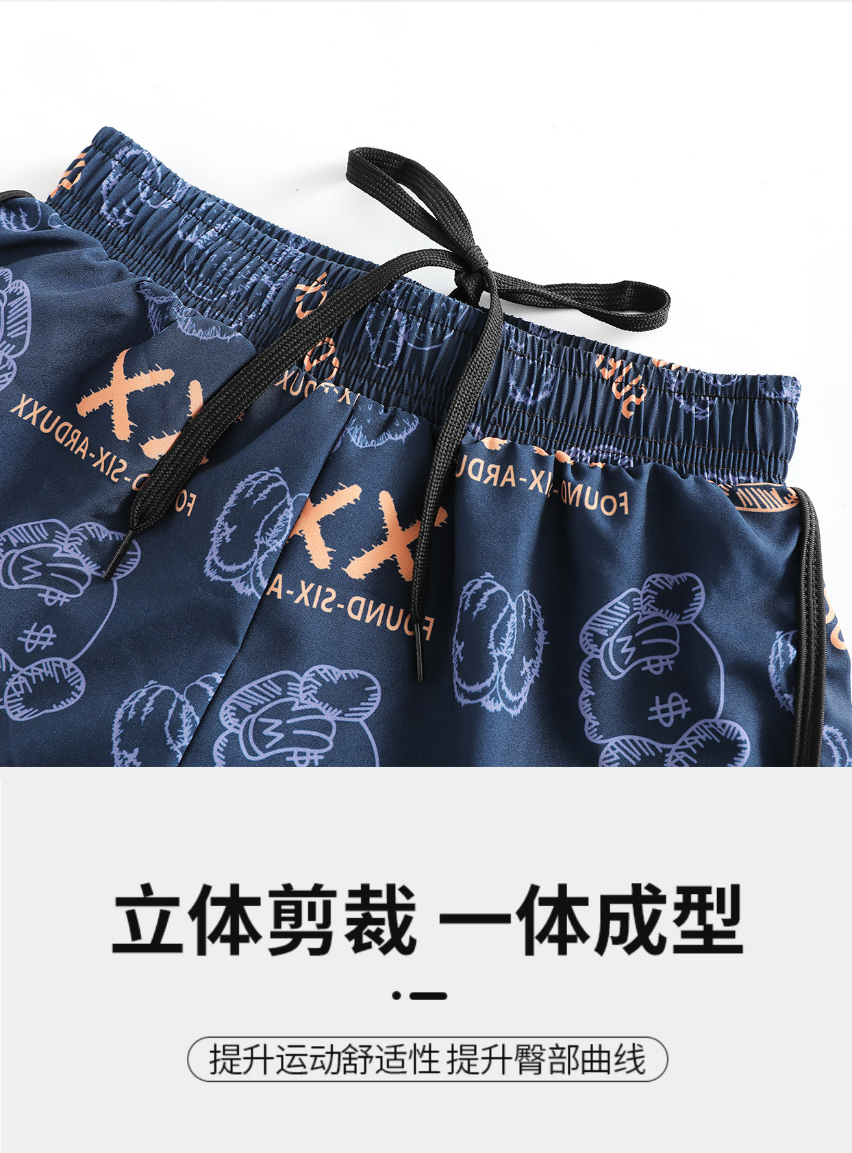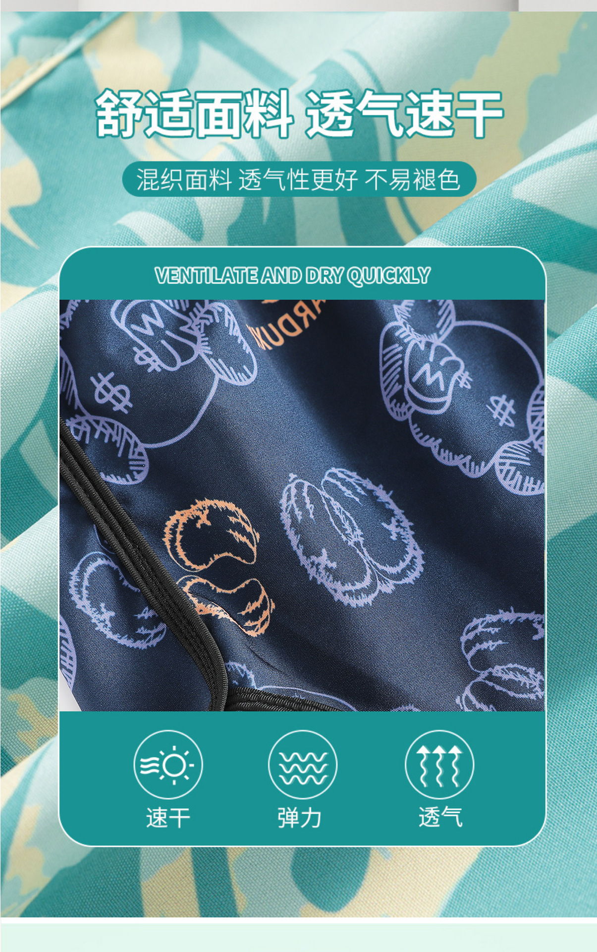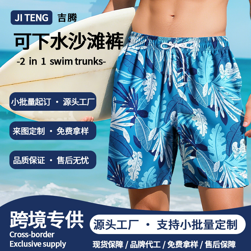 欧美跨境男士沙滩裤外穿印花直筒冲浪速干宽松双层内衬沙滩裤男