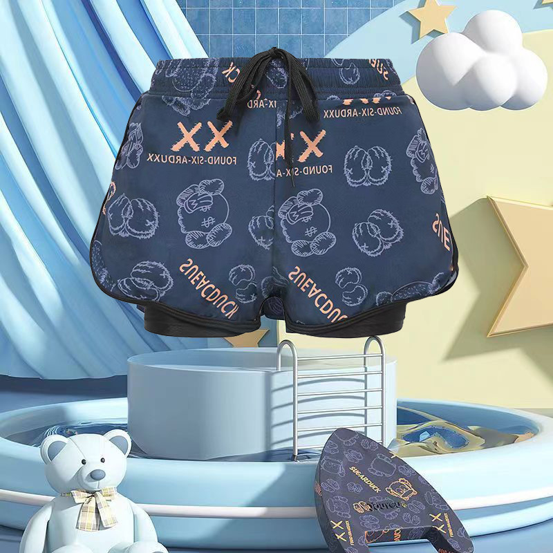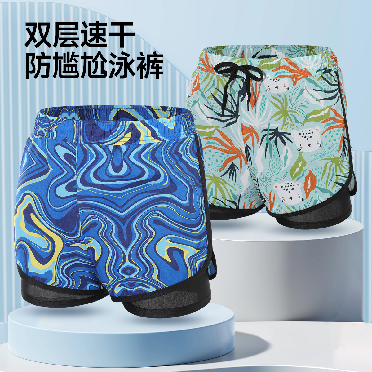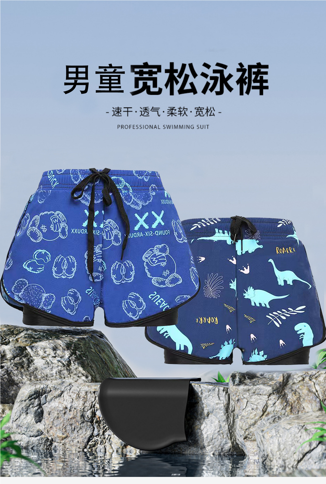 男の子水泳パンツ夏の新しいスタイル子供中大子供抗恥ずかしい二重層水泳パンツ速乾性漫画学生フルセット卸売