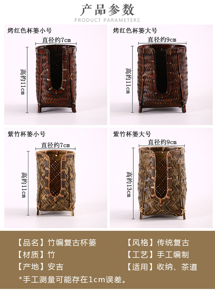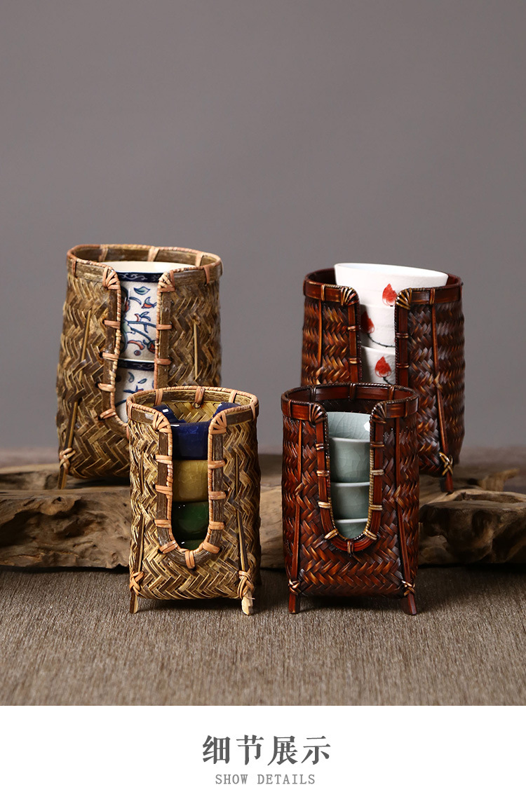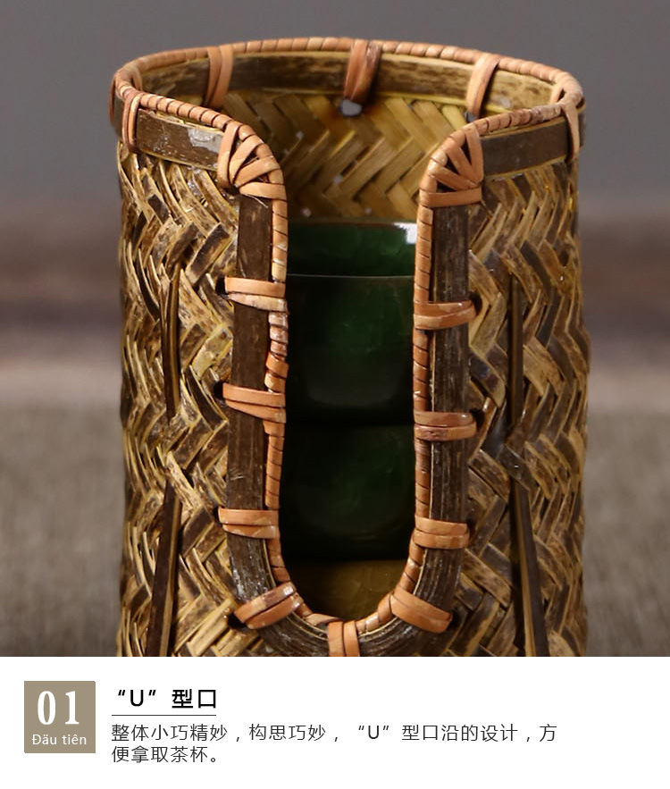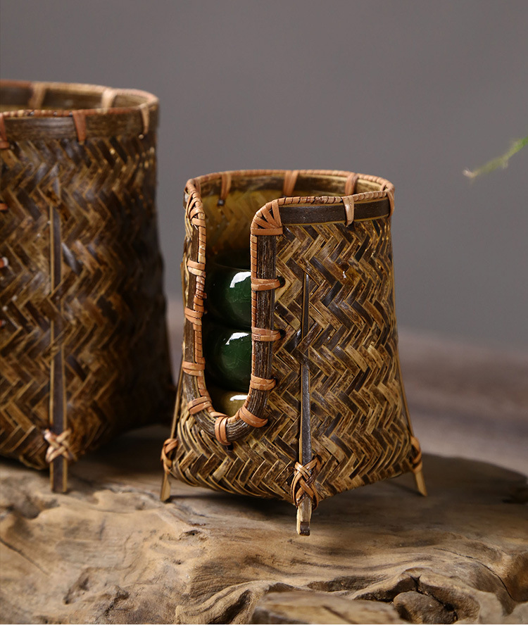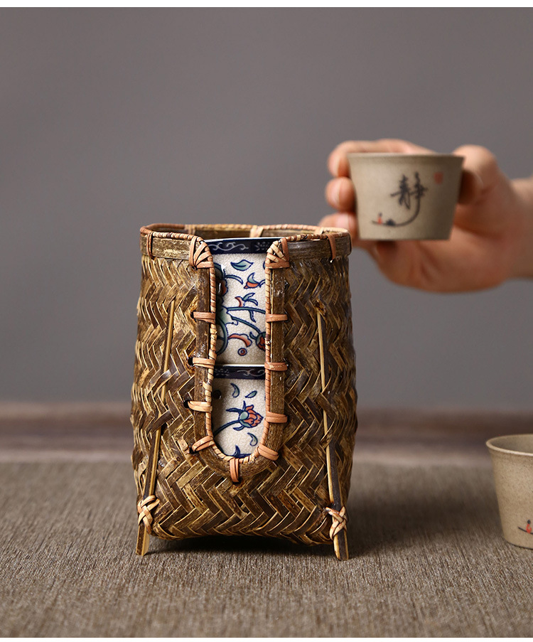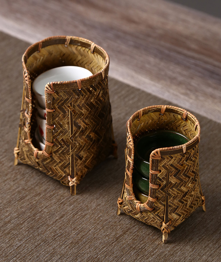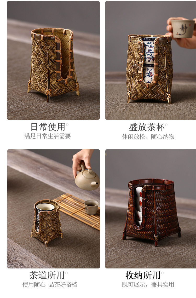 竹編みカップかご手作り茶道部品茶道具収納カップ棚カップケージ中国式禅意u型カップ収納