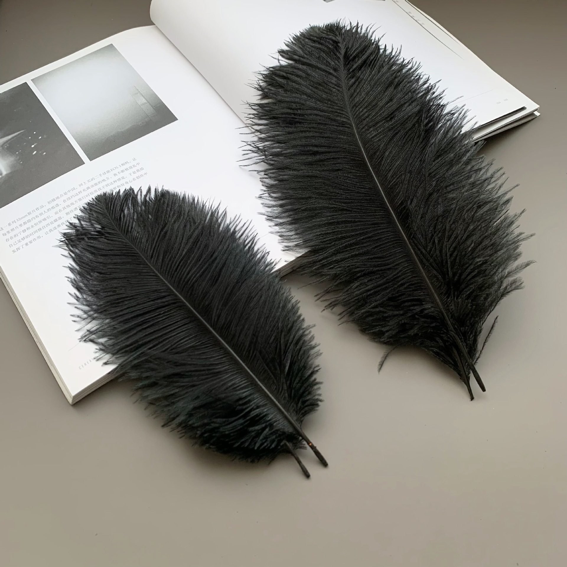 メーカー現物黒ダチョウ毛15-60cm羽diy舞台装飾生け花ウェディングダチョウ毛補助材料