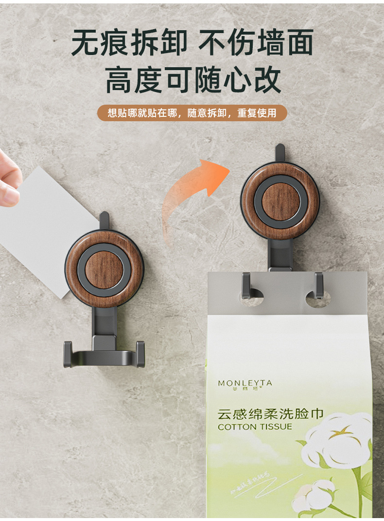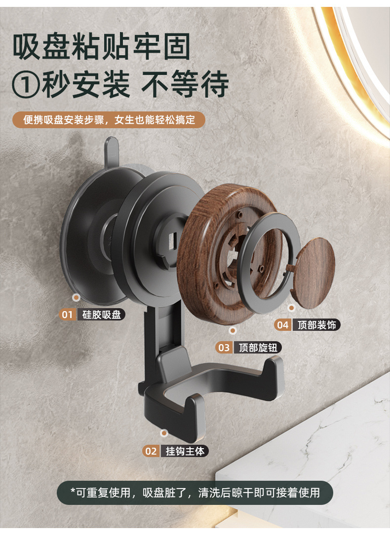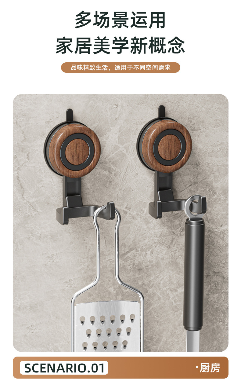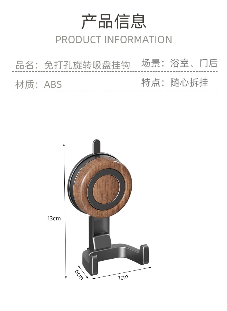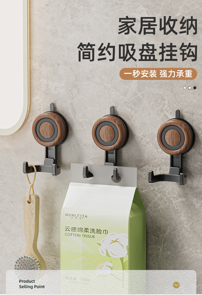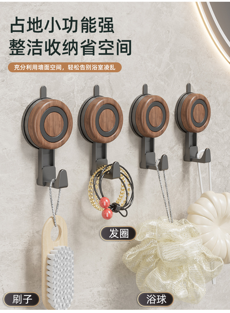 浴室免打孔旋转吸盘挂钩强力承重真空无痕卧室厨房易安装墙壁粘钩