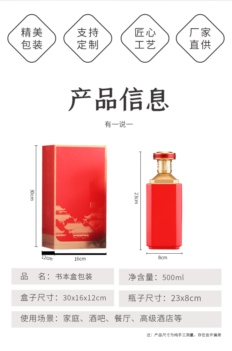縦紋酒瓶1斤入酒瓶祝宴紅事招待空瓶塗装花分入酒瓶カスタマイズ