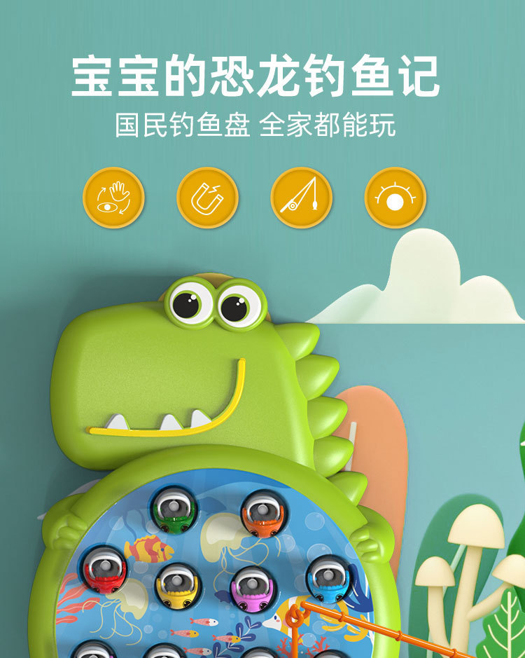 クロスボーダー子供シミュレーション磁気恐竜釣り盤早教知育開発親子インタラクティブ釣り玩具セット