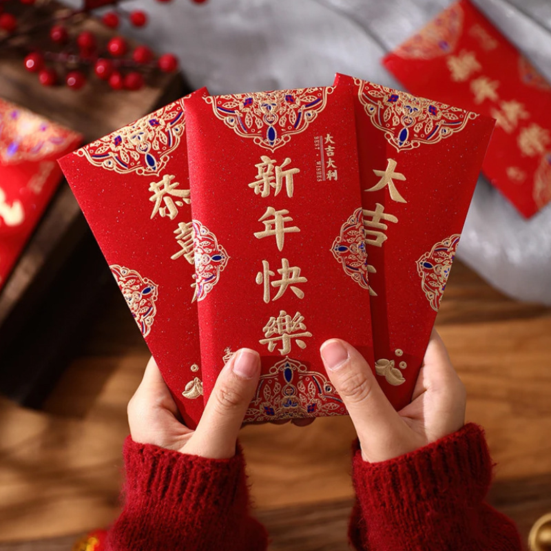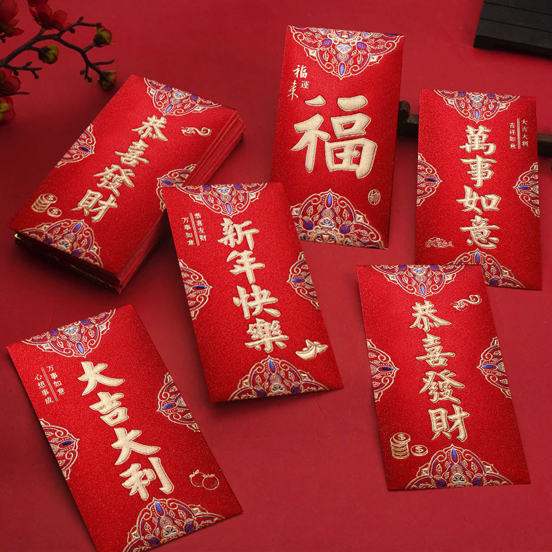 創造的な中国風の書道の紅包、新年あけましておめでとうございます、祝福のメッセージ入りの大きな紅包