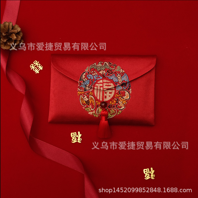 新型の高級な赤い福の字の結婚式は1万元の赤い包みの布芸の結婚を変えて新年の赤い包みの袋の卸売りに移ります。