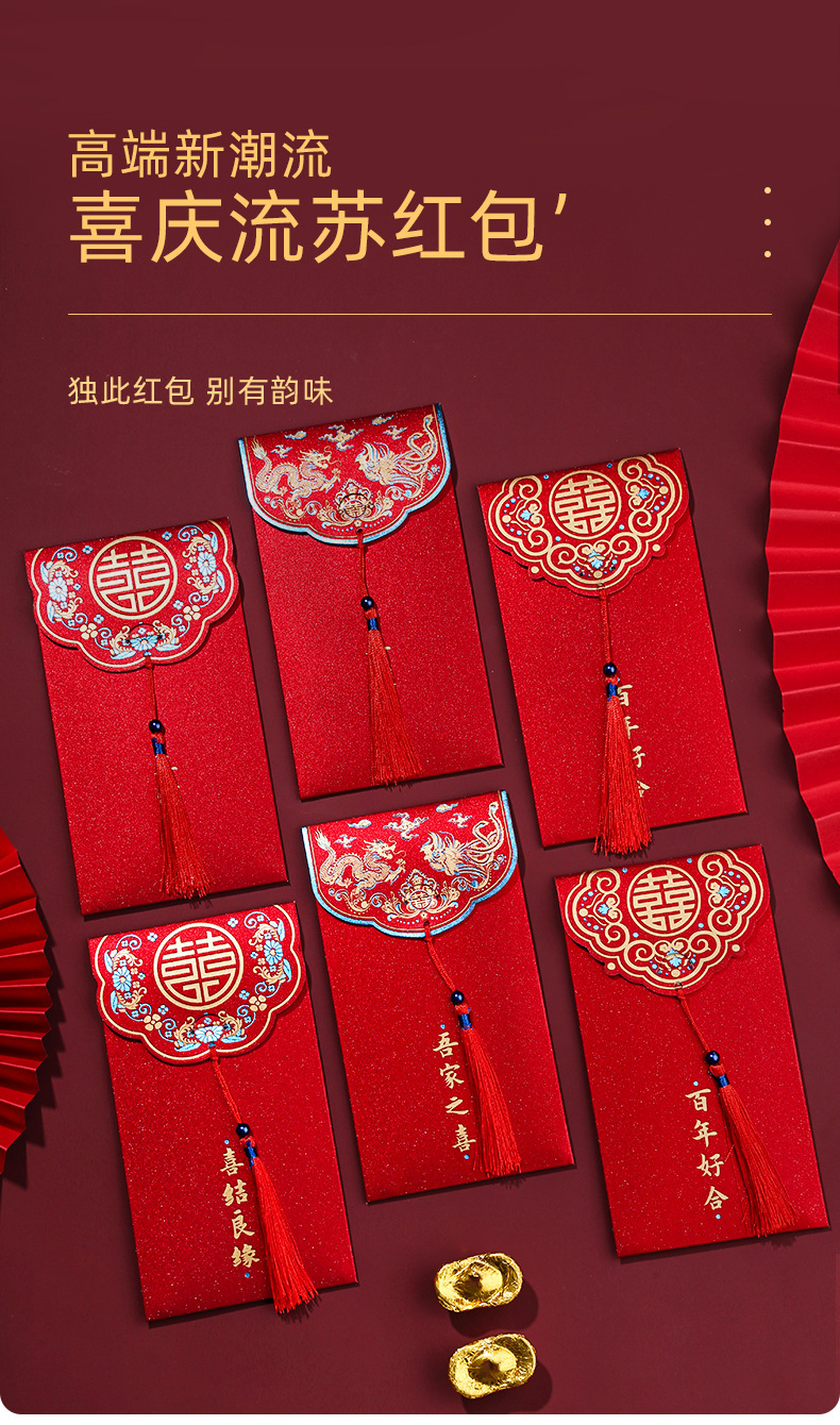 結婚紅包創意流蘇硬質紅包袋結婚式の口直し紅包中国式箔押し千円利は封卸売りである