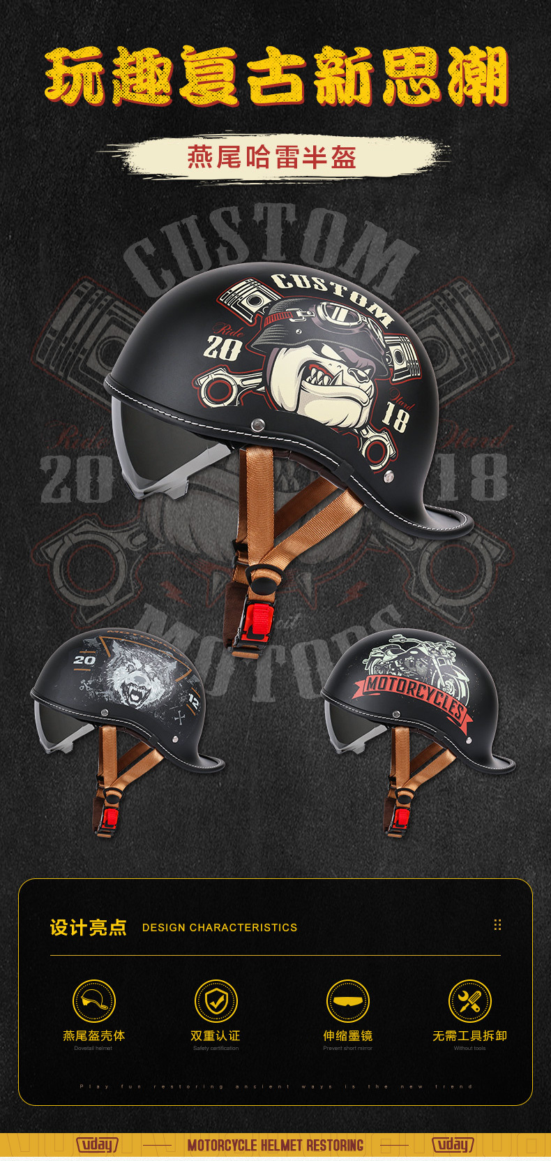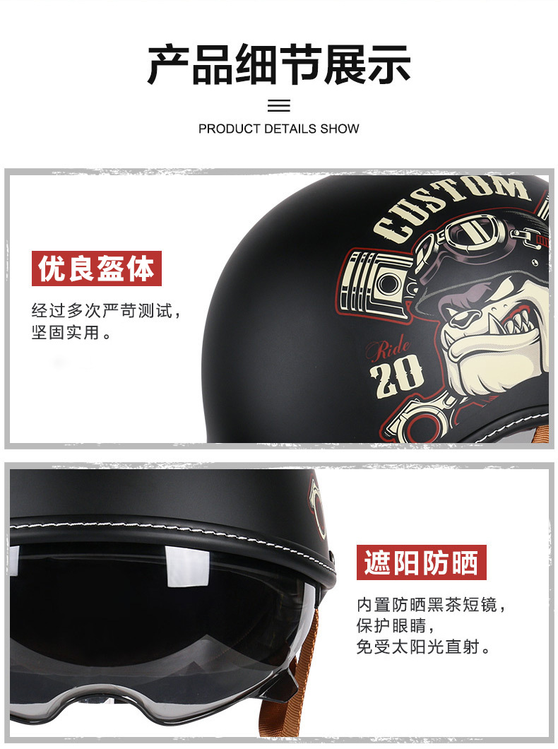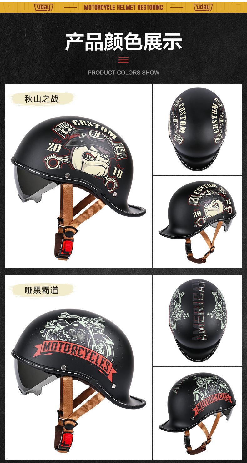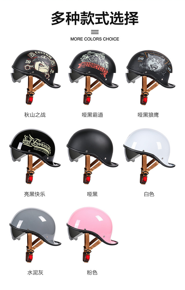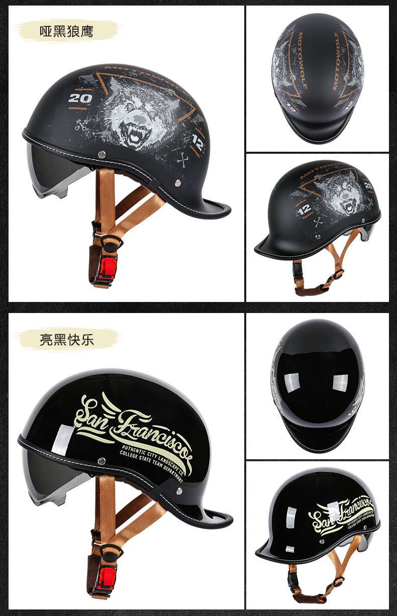 クロスボーダー四季復古ヘルメット革個性ヘルメット電気自動車3/4ヘルメット大亀王ペダルヘルメット