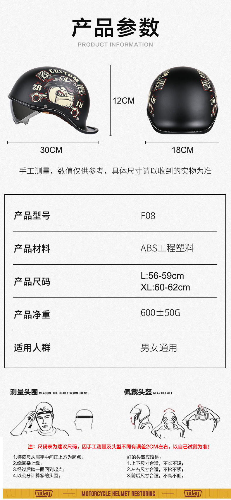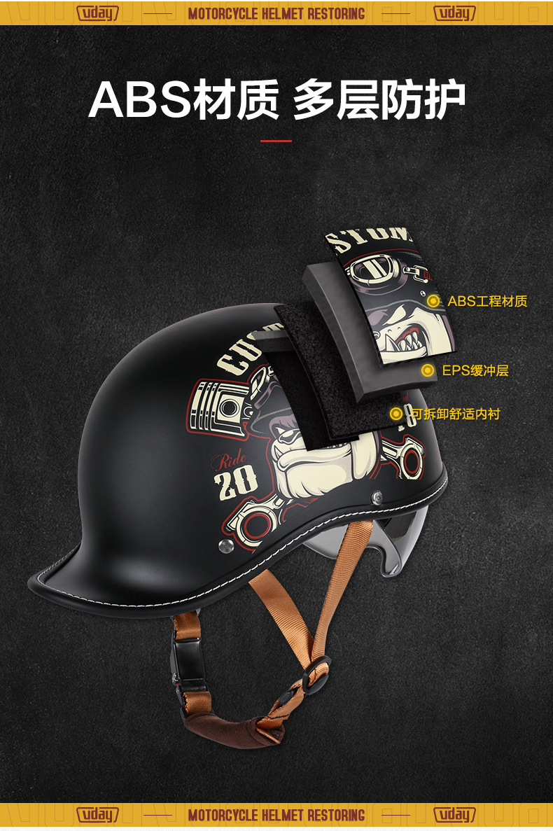 VDAY復古ヘルメット瓢箪ヘルメット大サイズ反り半ヘルメット厚さ減震電動バイク機関車男女夏半ヘルメット