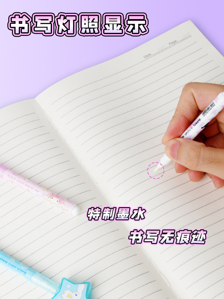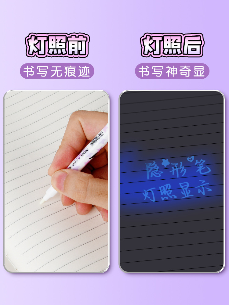 隐形荧光笔灯照笔夜光隐身笔带紫外线手电筒闪光秘密写字发光的笔