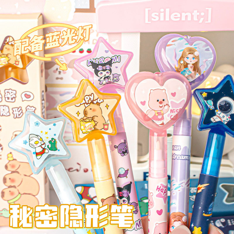 卡皮巴拉隐形荧光笔套装贴纸暗语消失笔魔术笔密语笔紫外线暗记号
