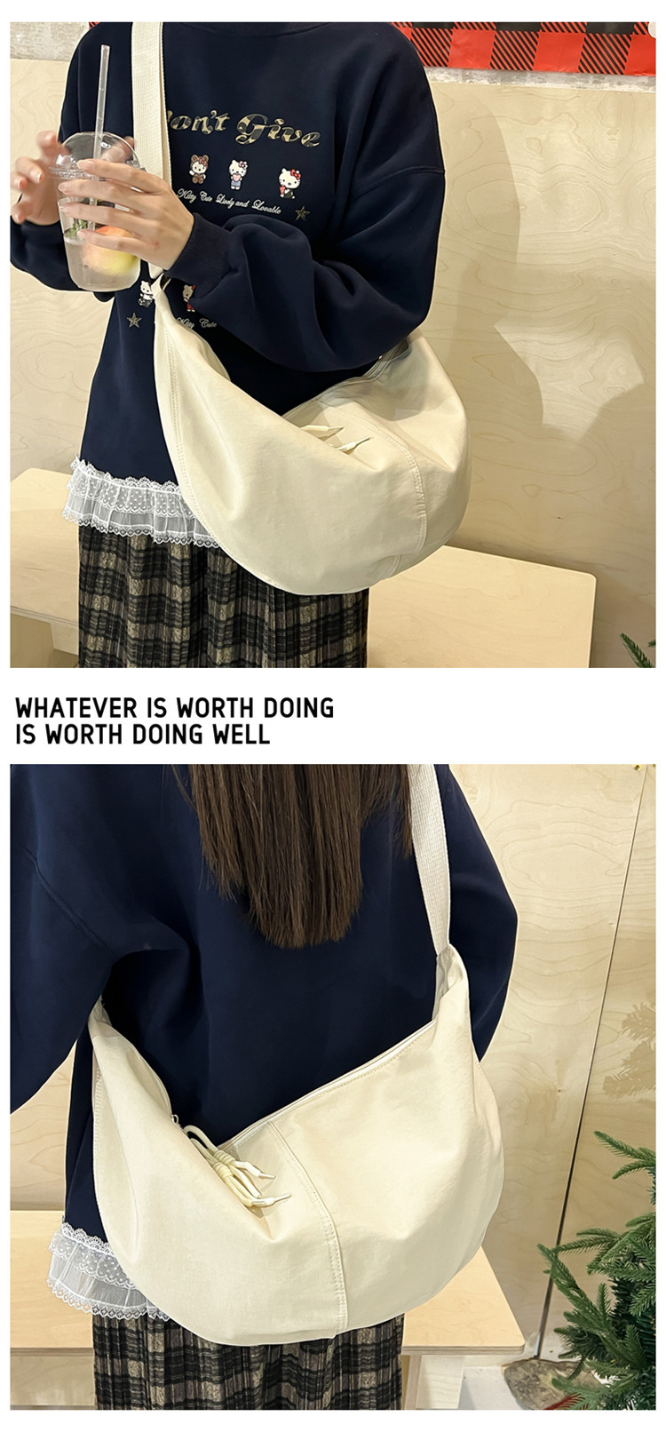 キャンバスバッグレディース斜め掛けバッグins学生布袋カバンカジュアル片肩小衆餃子カバン大容量旅行カバン
