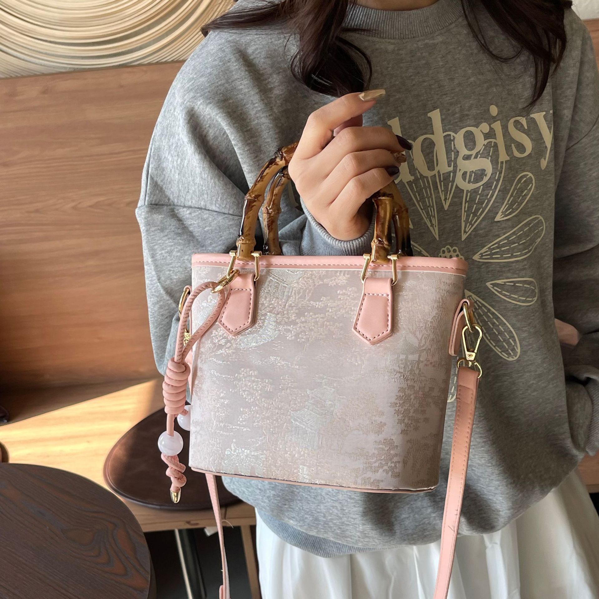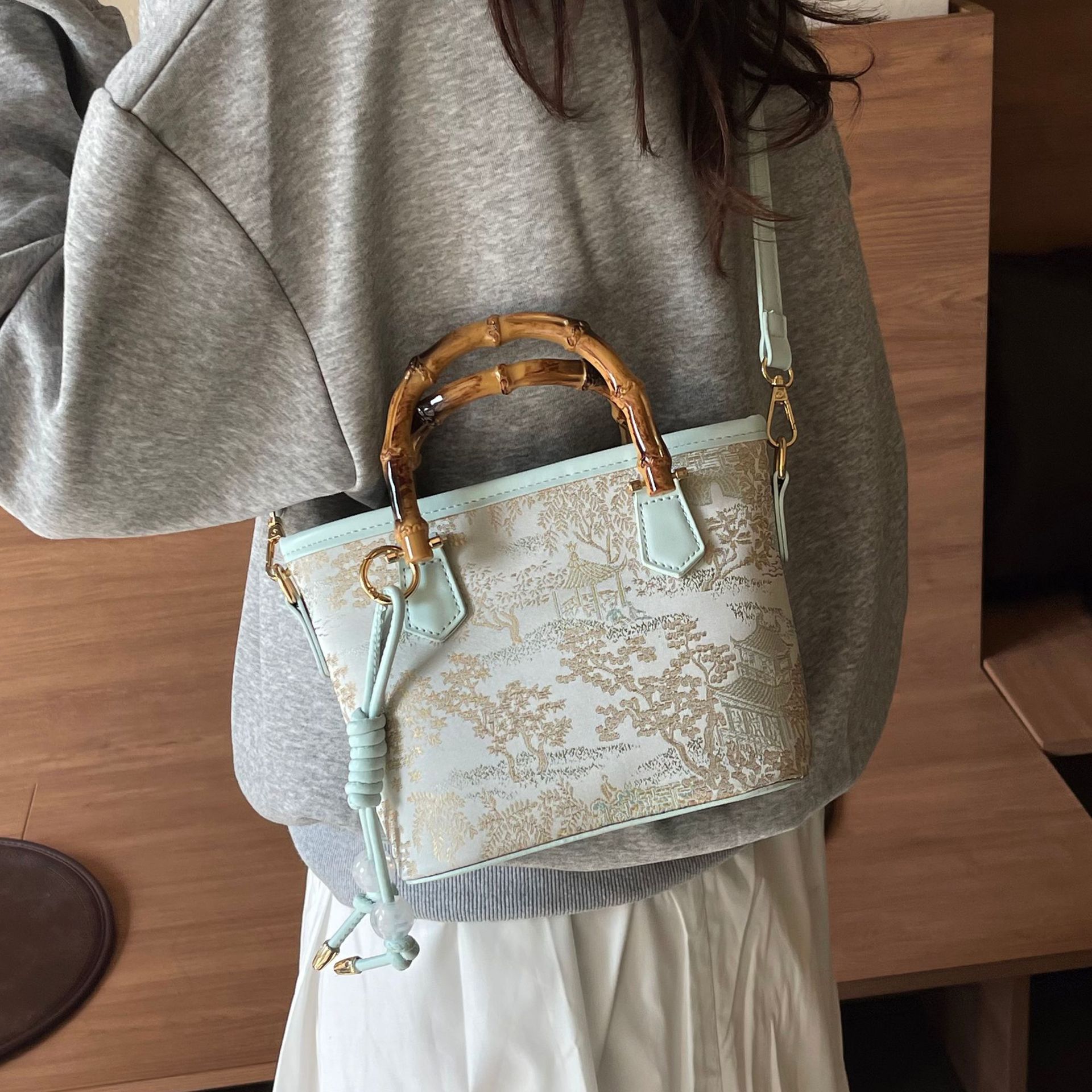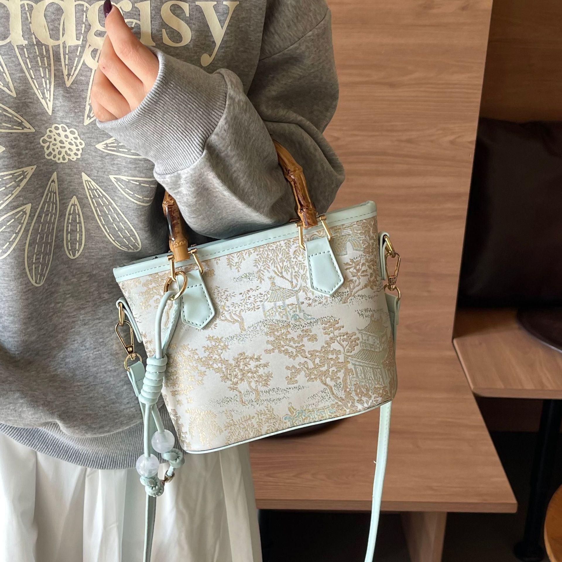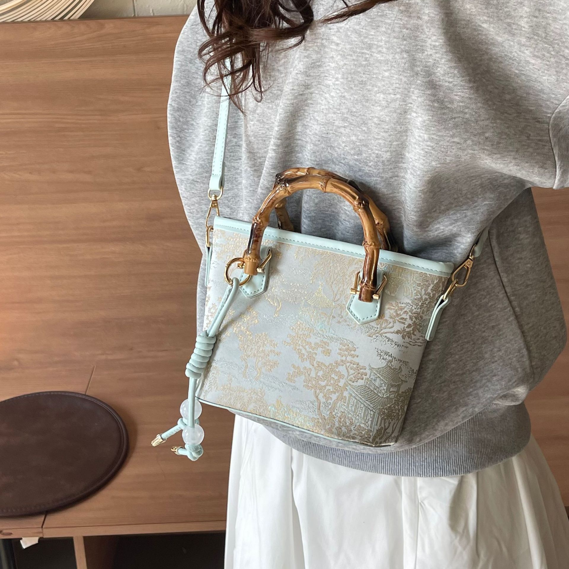 クロスボーダー小カバン2025新作刺繍竹節手提げシングルショルダーバッグ