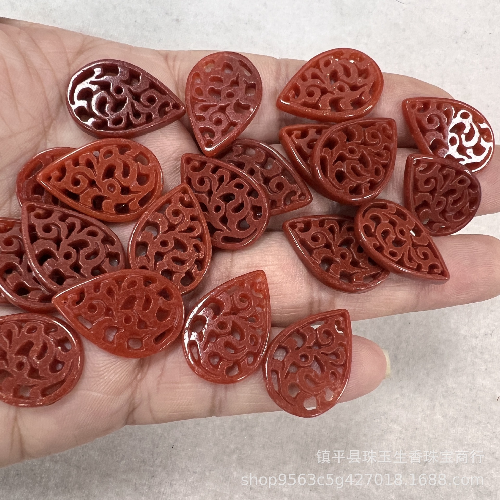 翡翠の赤い翡翠の福は目の前で透かし彫りして耳に落ちます。
