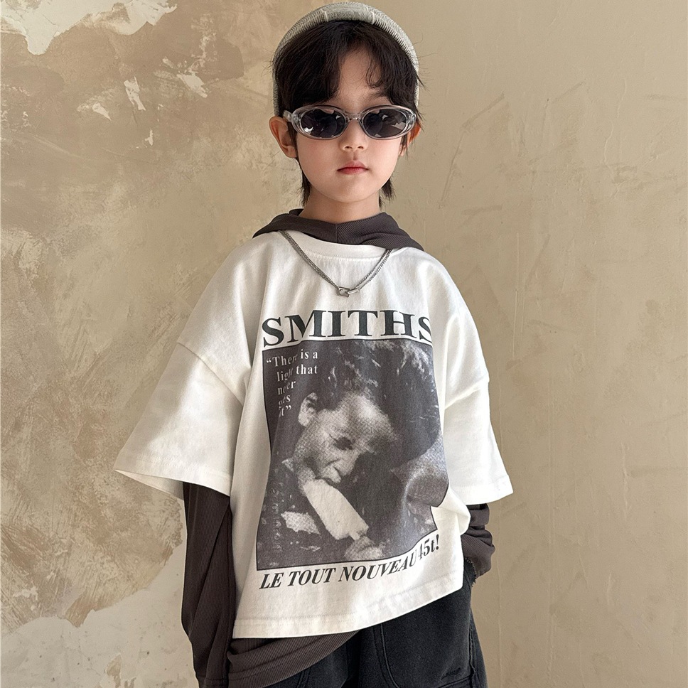 2025 春夏新作子供半袖レトロフライドカラー漫画プリント男の子パーソナライズされた純綿半袖トレンディなスタイル