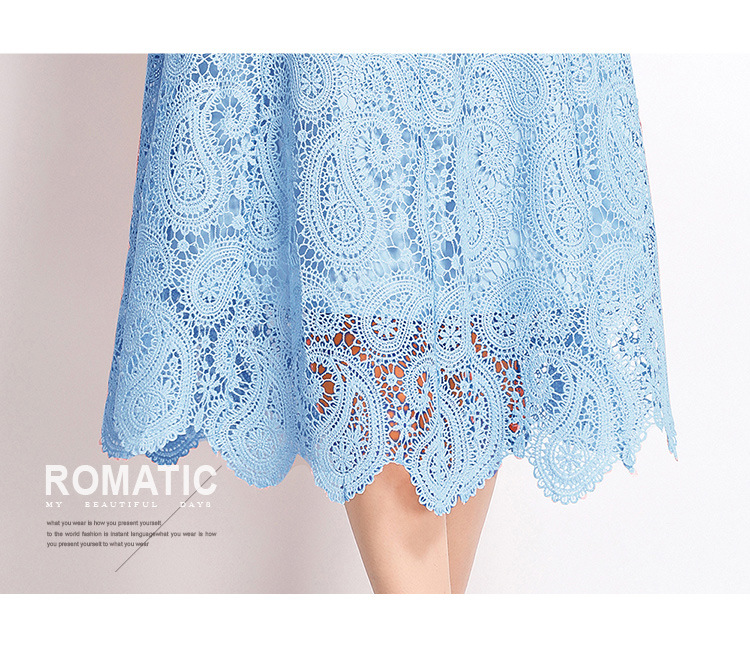実写スポットの新型ヨーロッパ商品レースの透かし彫りデザインの袖なしウエストワンピース