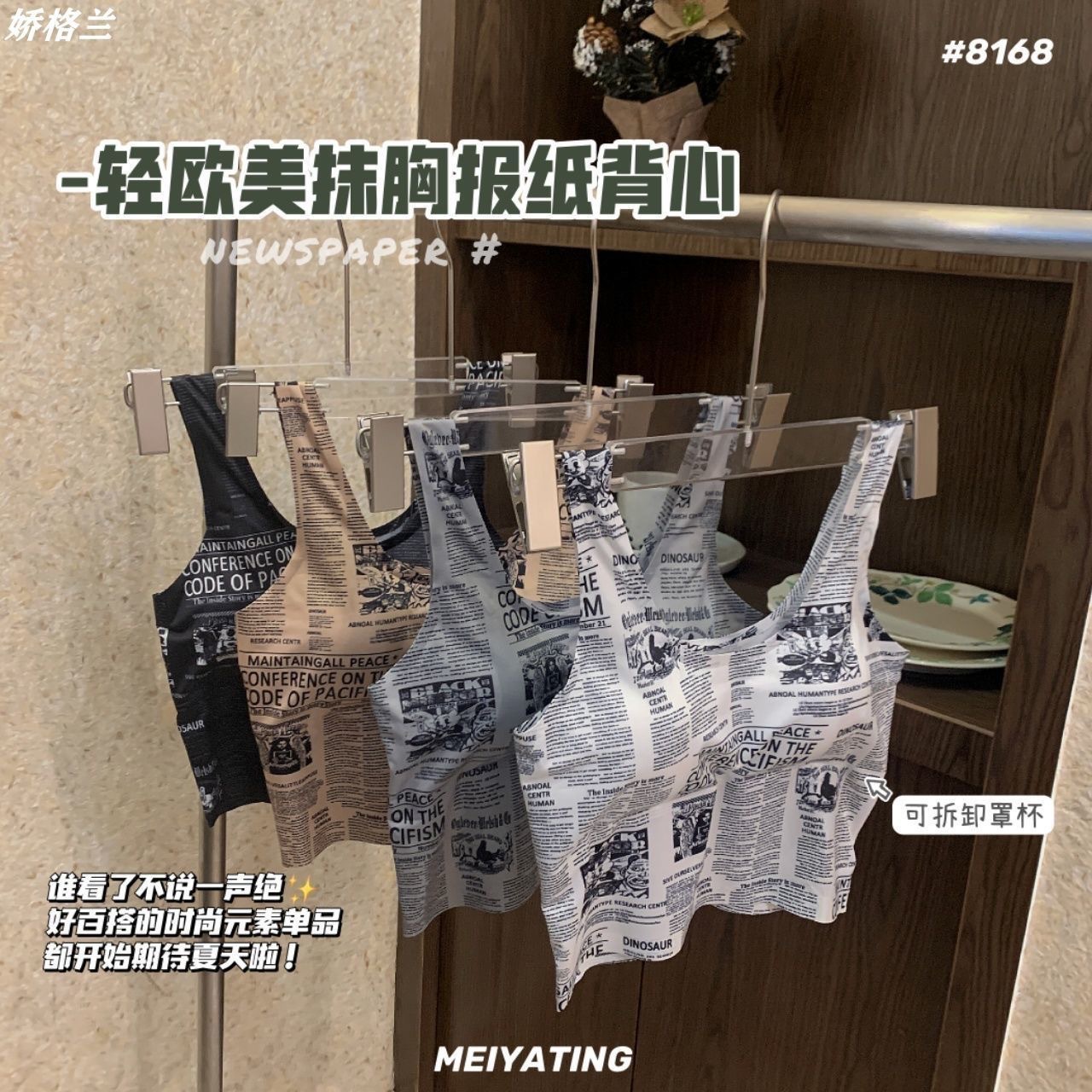 夏の欧米風の胸の新聞のプリントのベストは痕跡がありません。