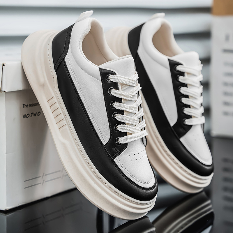 2025秋季新款潮鞋休闲运动板鞋厚底板鞋男春季新款纯色休闲鞋大码