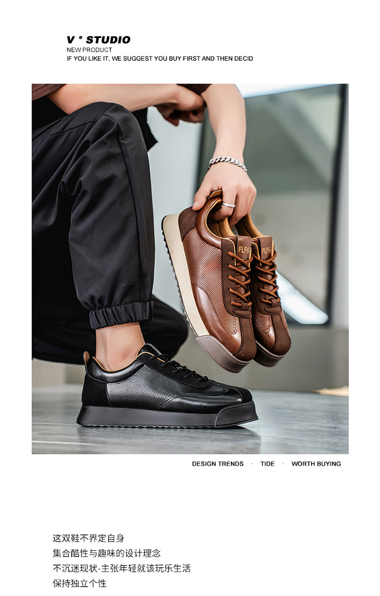 男性の靴の春の2025の新型のファッションはスポーツのレジャーの板の靴の男性のクロスボーダーの厚い底の黒色の阿甘潮の靴を組み合わせます。