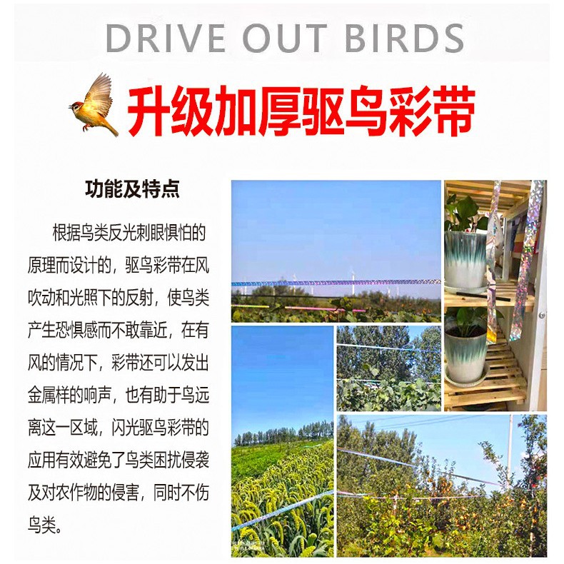 アマゾン工場卸売り農業カラー鳥駆除帯果樹園農場防鳥鳥鳥びっくり鳥反射鳥駆除帯
