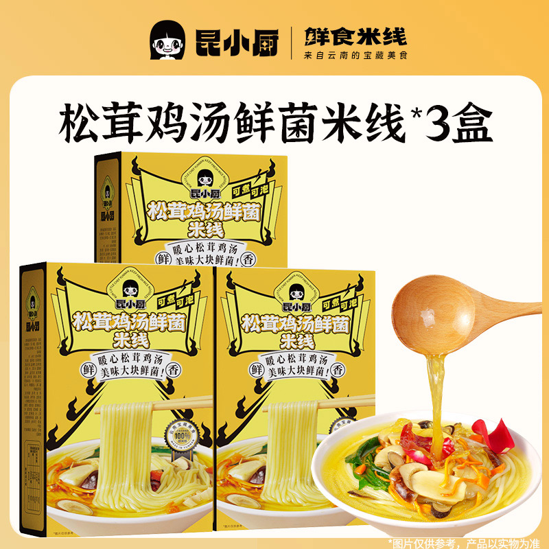 Kun Xiaochu丨松茸鶏だし、生菌類、インスタントライスヌードル、雲南名物インスタントラーメン、怠け者のためのインスタントラーメン 3箱