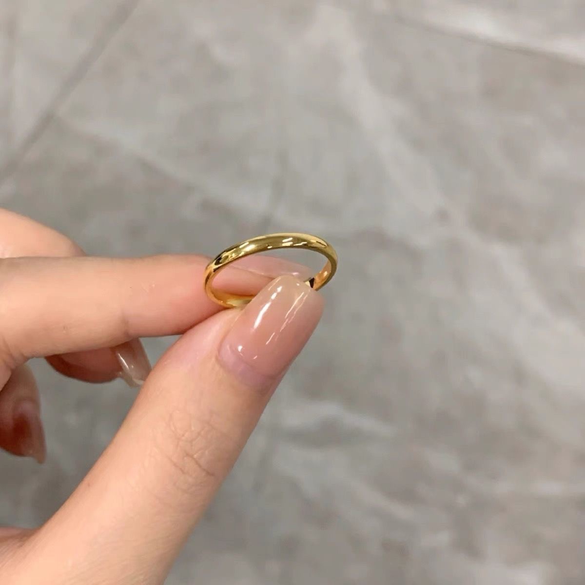 钛钢戒指金色细弧面戒指2025爆款简约潮情侣对戒2mm可叠戴指环