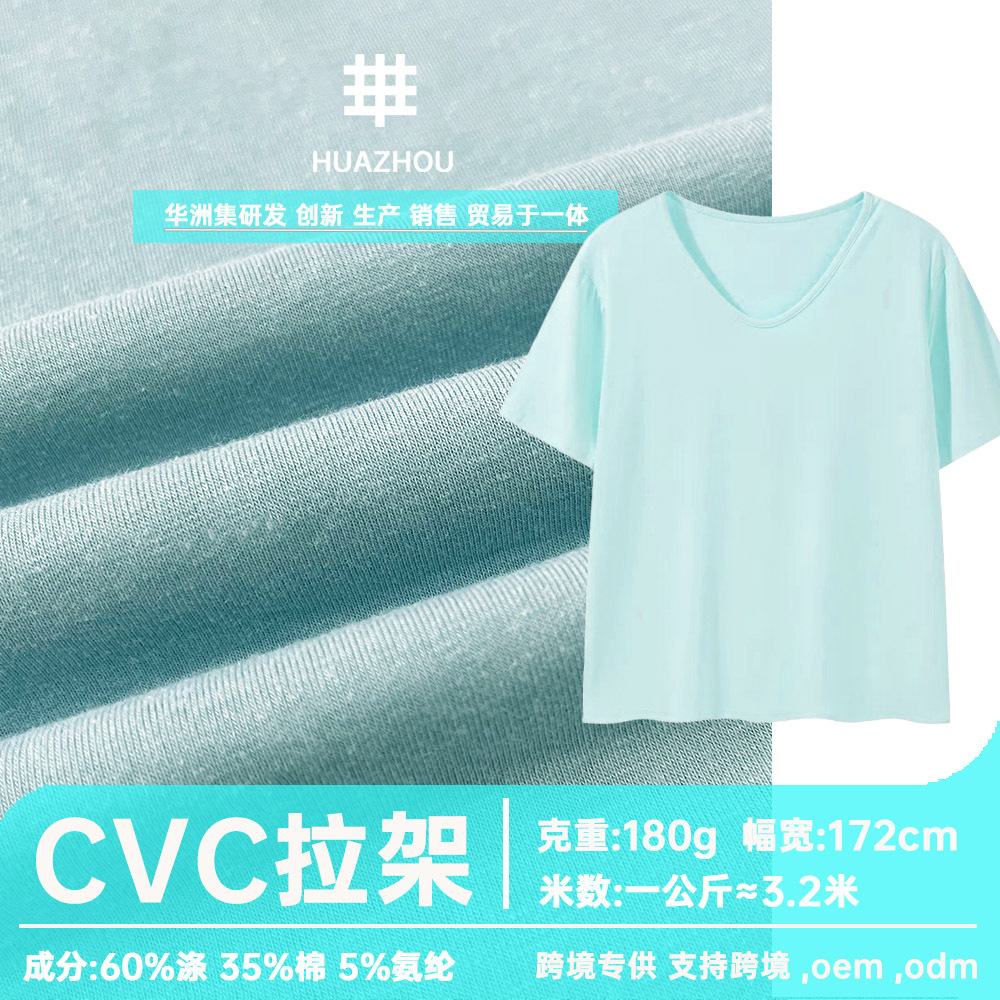 現物180グラムCVC片面フレーム弾力通気ニット汗布春夏ファッションtシャツ底生地卸売り