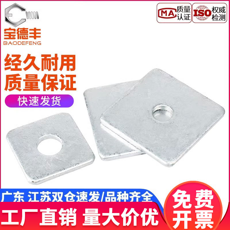铁镀锌方垫片方形垫片四方垫片带孔热镀锌正方形平垫片M6M8M10M12