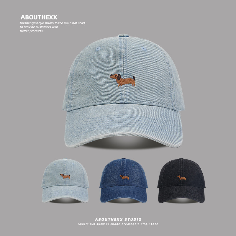 2025新型ソーセージ犬刺繍デニム鴨舌帽子供春夏カジュアル顔ソフトトップ野球帽男潮