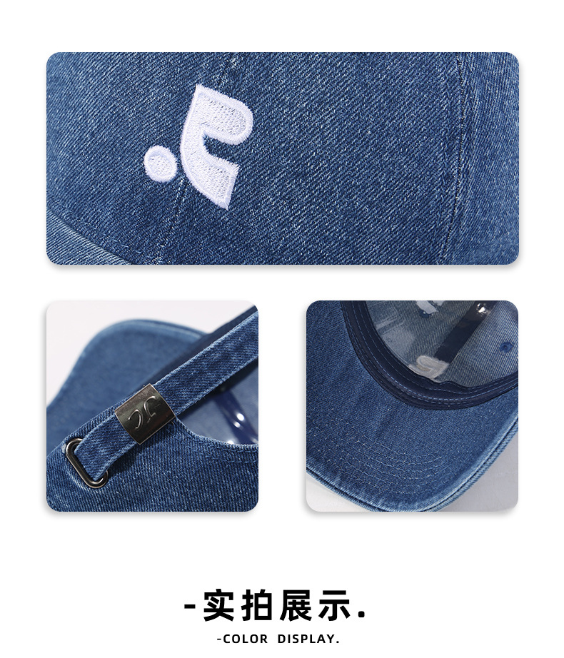水洗牛仔鸭舌帽女韩版深顶大头围情侣街头潮牌棒球帽男宽檐设计