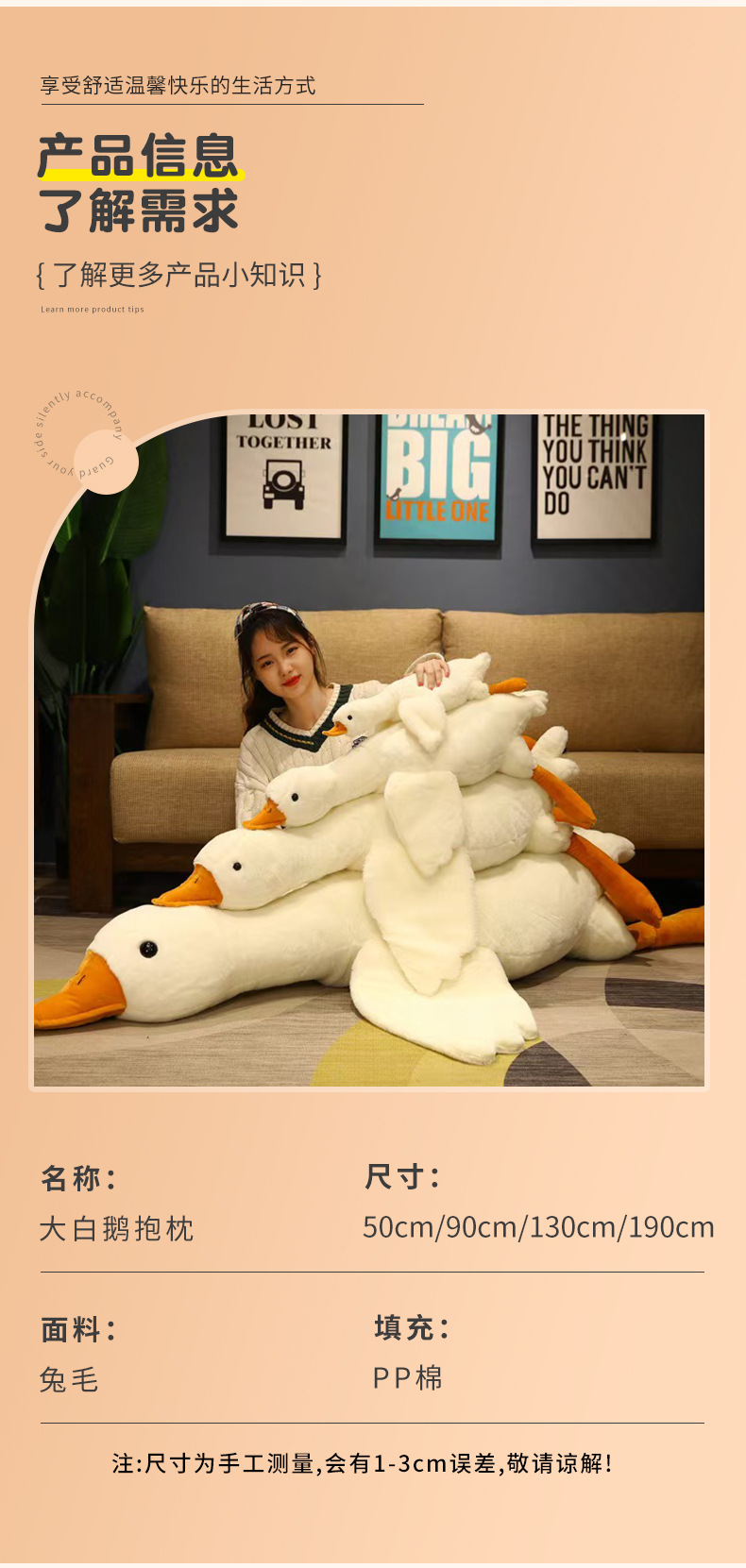 抱き枕ぬいぐるみ 大型ガチョウ人形 布製人形 ベッドで寝るための誕生日プレゼント 女の子用ぬいぐるみ
